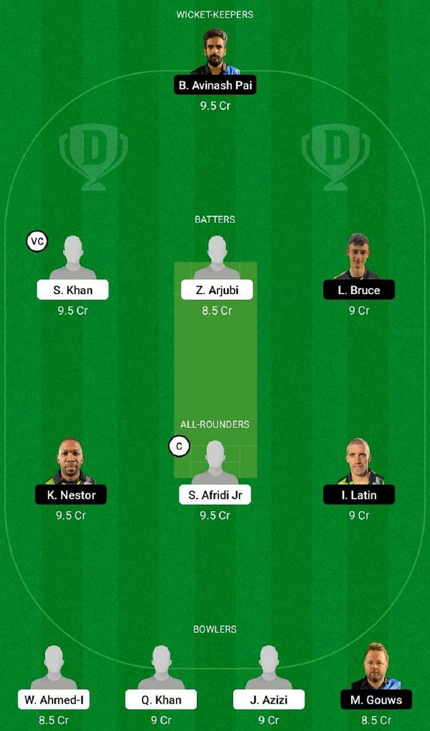 Fantasy Suggestion #1: A Pai, S Khan, Z Arjubi, L Bruce, K Nestor, S Afridi, I Latin, W Ahmed, Q Khan, J Azizi and M Gouws