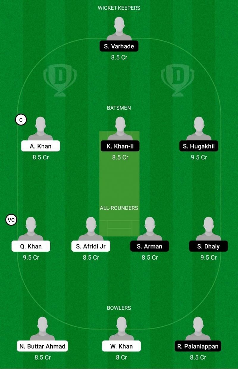 Fantasy Suggestion #1: Swapnil Varhade, Adel Khan, Kamran Khan, Suliman Hugakhil, Shahid Afridi, Shahidullah Arman, Qader Khan, Sahalom Dhaly, Nafees Buttar, Rubesh Palaniappan, Waseem Khan