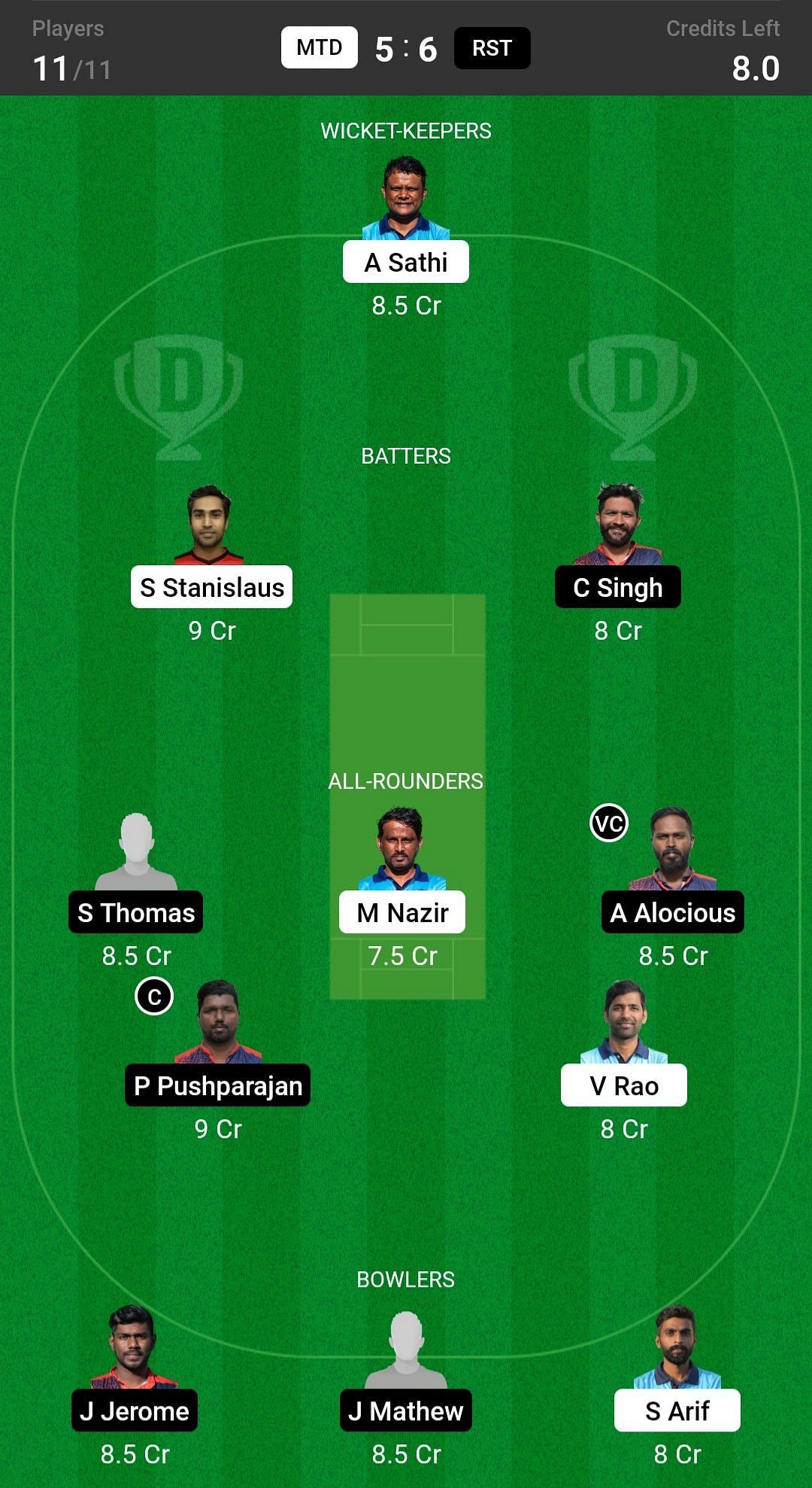 MTD vs RST match captain and vice-captain choices