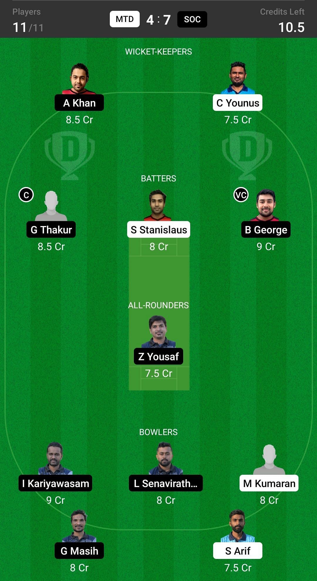 SOC vs MTD match captain and vice-captain choices