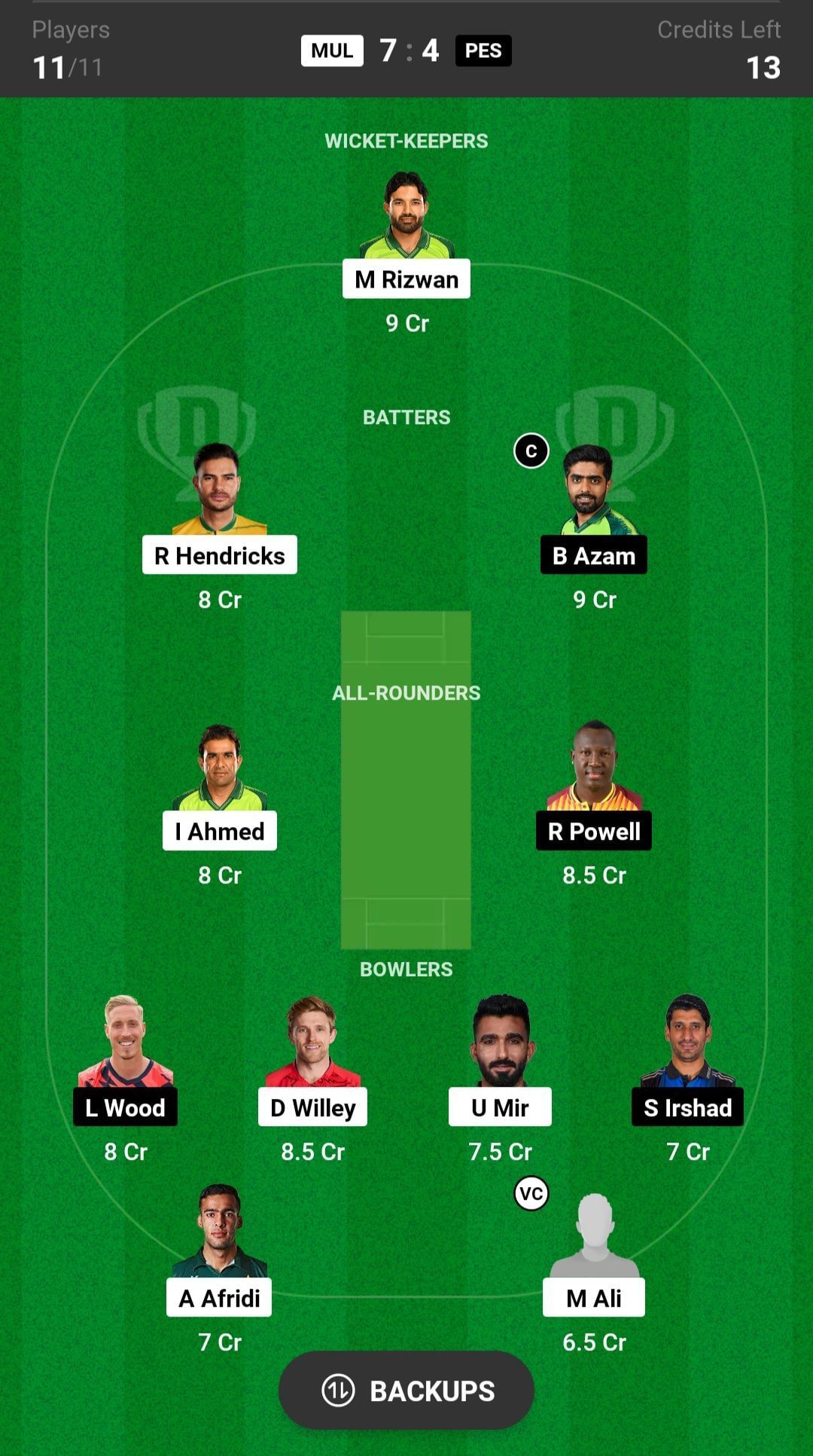 MUL vs PES match captain and vice-captain choices