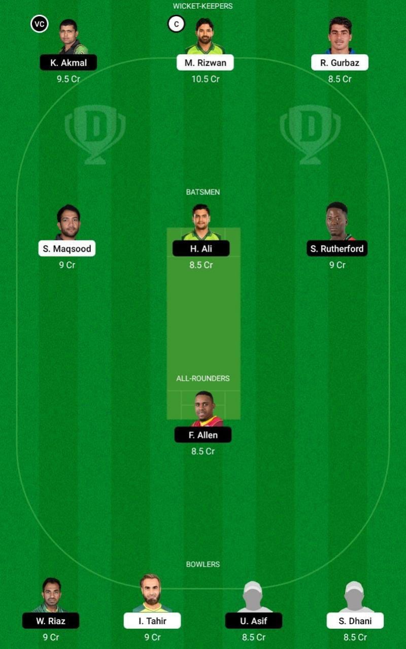 Fantasy Suggestion #1: M Rizwan, K Akmal, R Gurbaz, S Maqsood, S Rutherford, H Ali, F Allen, W Riaz, S Dhani, I Tahir and U Asif
