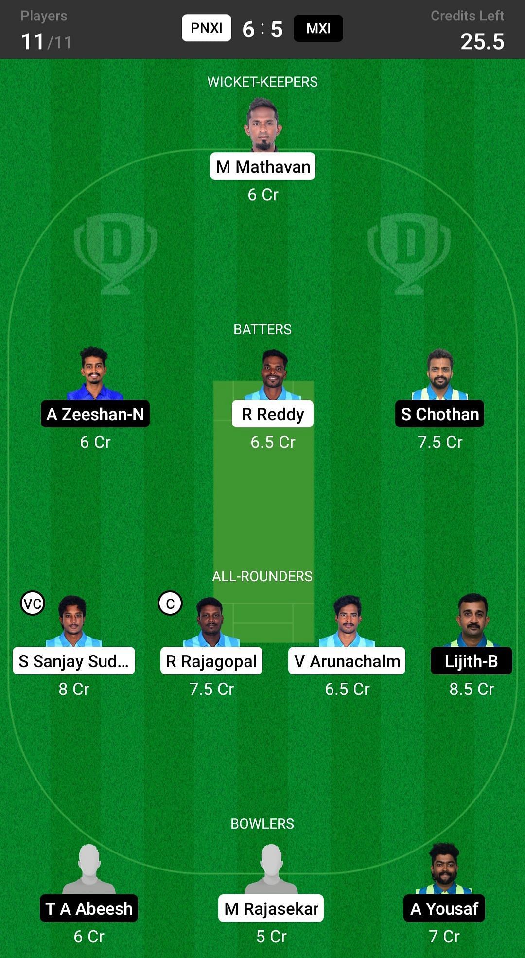 Mahe XI vs Pondicherry North XI Dream11 Prediction Today, Grand League