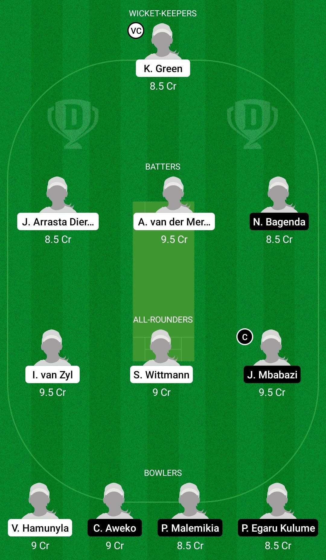 Fantasy Suggestion #2: Kayleen Green, Jurriene Diergaardt, Adri van der Merwe, Naome Bagenda, Irene van Zyl, Sune Wittmann, Janet Mbabazi, Victoria Hamunyela, Concy Aweko, Patricia Malemikia, Phiona Kulume.