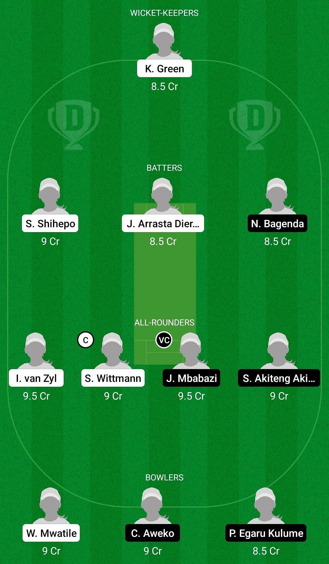 Fantasy Suggestion #1: Kayleen Green, Sylvia Shihepo, Jurriene Diergaardt, Naome Bagenda, Irene van Zyl, Sune Wittmann, Janet Mbabazi, Sarah Akiteng, Wilka Mwatile, Concy Aweko, Phiona Kulume