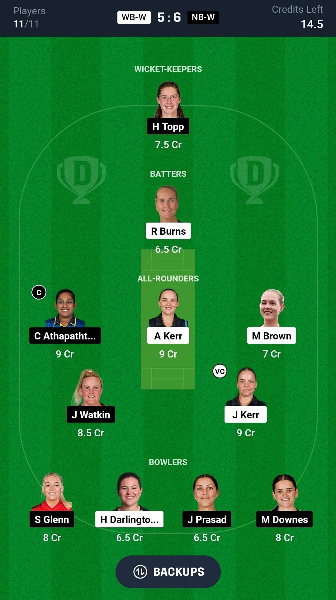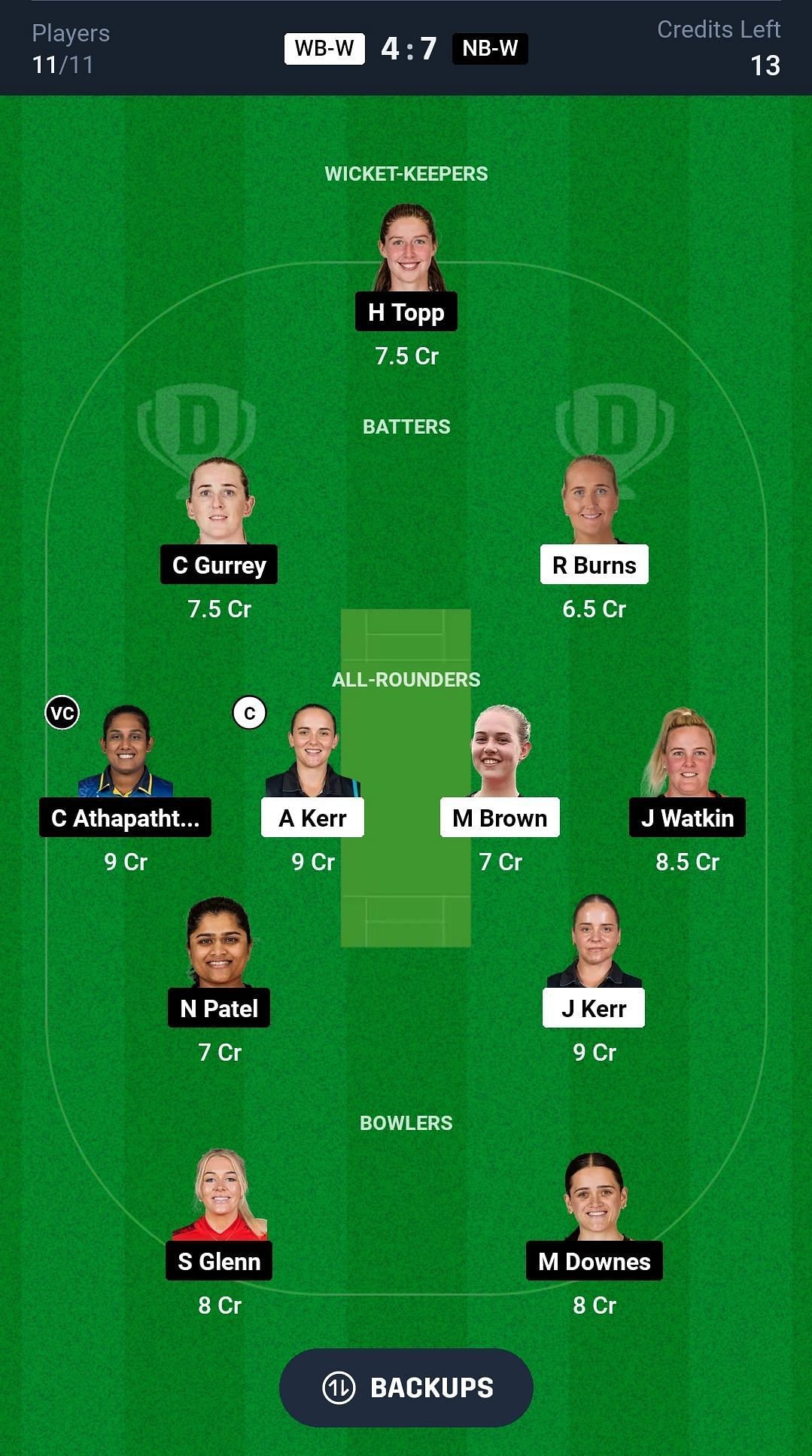 Ahead of this exciting match, here's all you need to know about the NB-W vs WB-W Dream11 Prediction, today's playing 11s, fantasy cricket tips, best player picks, and the pitch report.