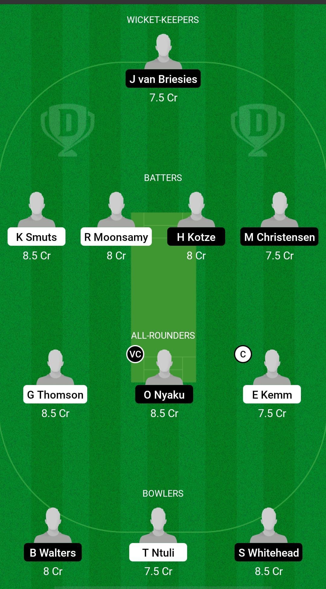 Batters: Kelly Smuts, Rivaldo Moonsamy, Mathew Christensen, Hanno Kotze