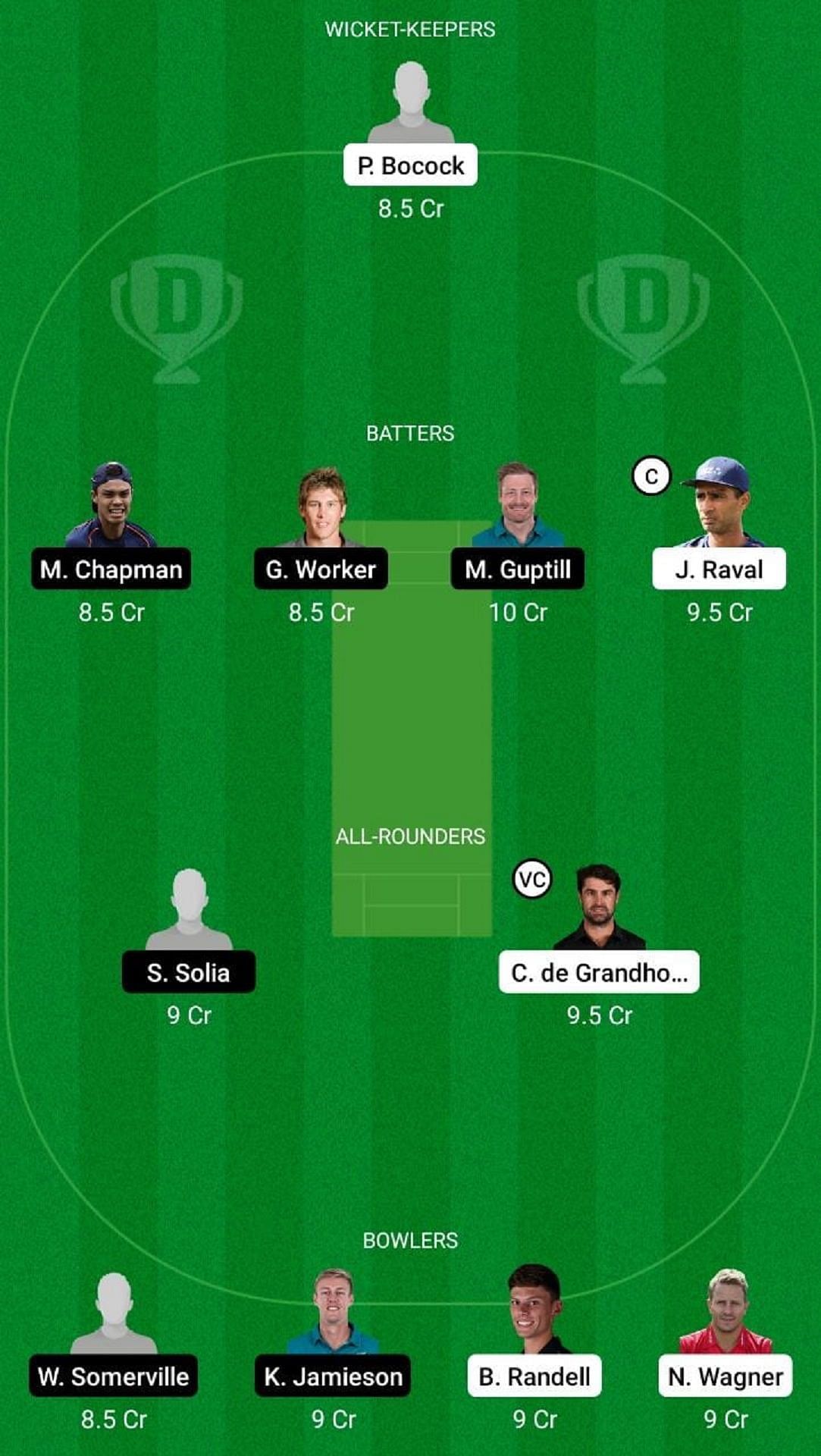 Captain: Jeet Raval. Vice-Captain: Colin de Grandhomme.
