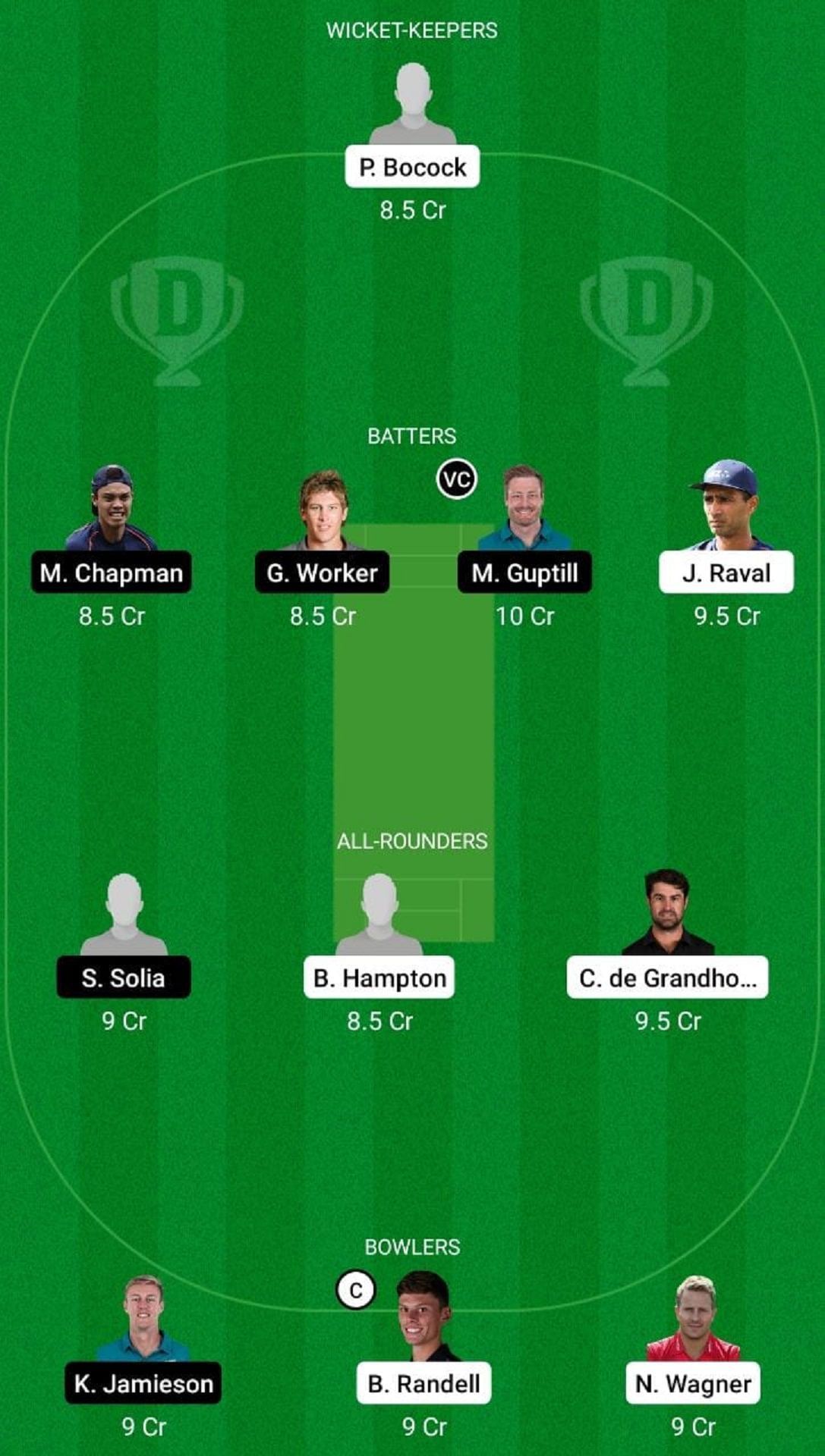 Fantasy Suggestion #1: Peter Bocock, Jeet Raval, Mark Chapman, Martin Guptill, George Worker, Colin de Grandhomme, Sean Solia, Brett Hampton, Brett Randell, Neil Wagner, Kyle Jamieson.