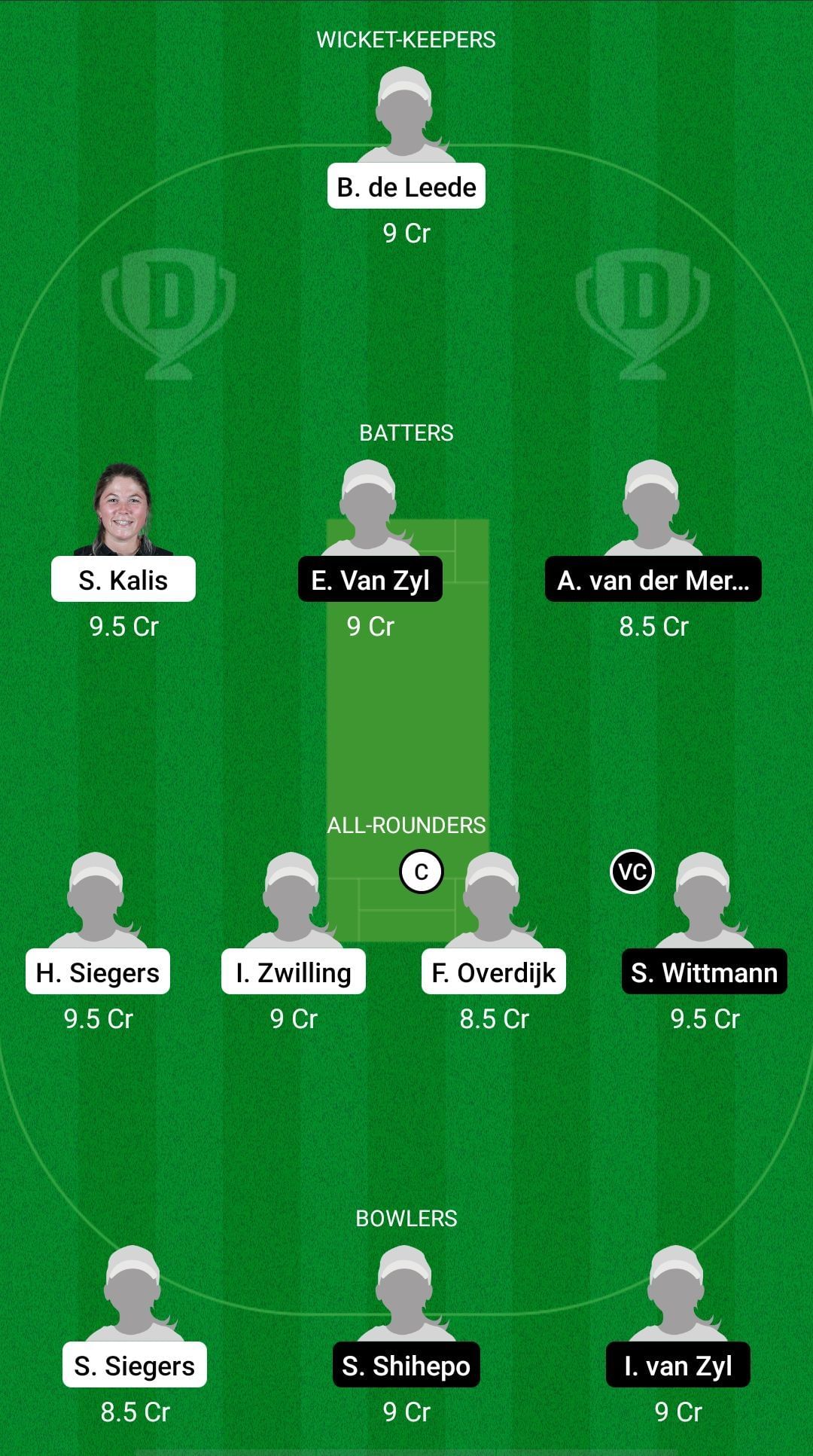 Fantasy Suggestion #1: Babette de Leede, Sterre Kalis, Edelle van Zyl, Adri van der Merwe, Heather Siegers, Iris Zwilling, Frederique Overdijk, Sune Wittmann, Silver Siegers, Sylvia Shihepo, Irene van Zyl