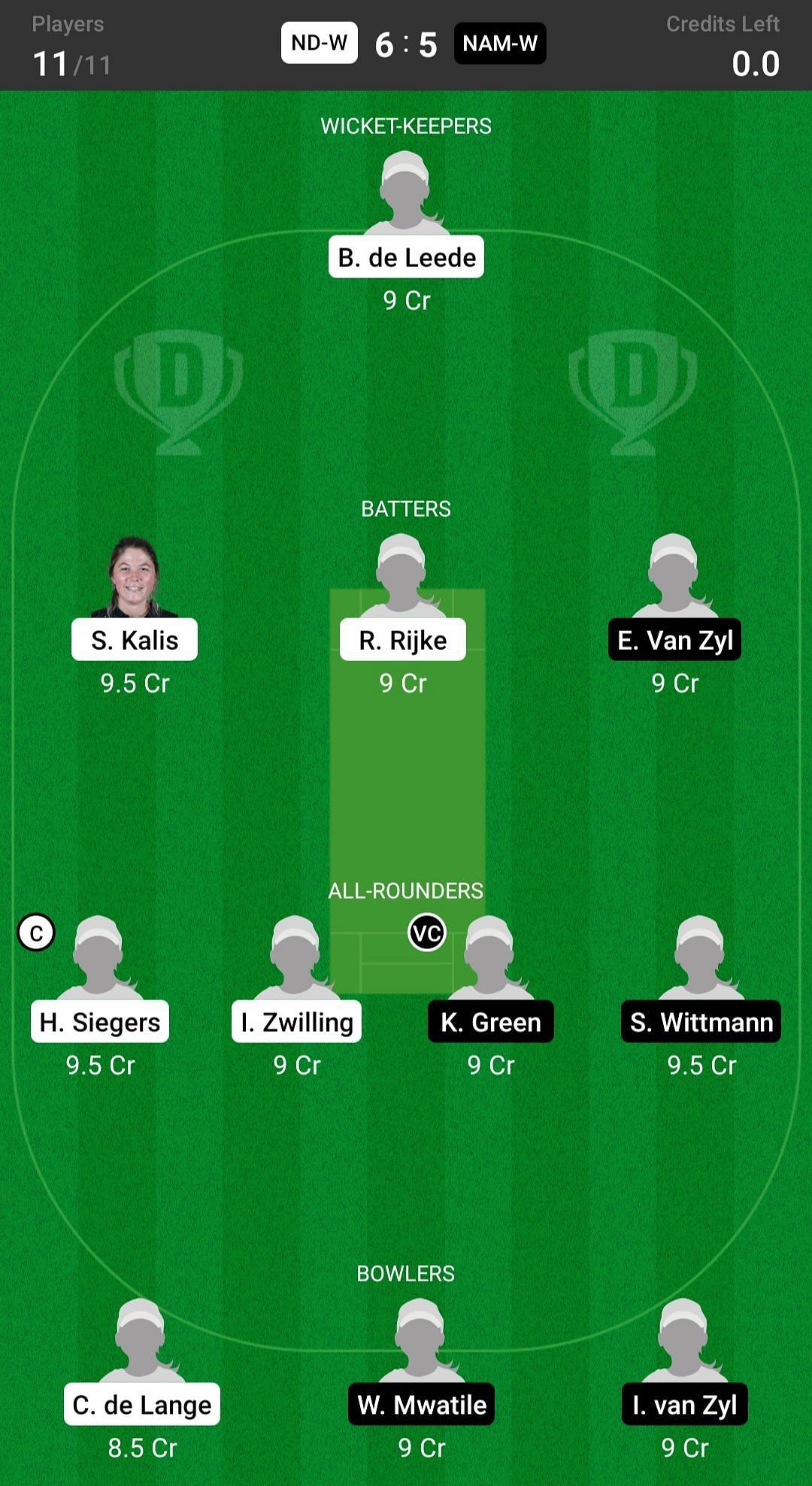 Fantasy suggestion #1: B De Leede, Y Khan, S Kalis, R Rijke, E Van Zyl, H Siegers, K Green, S Wittmann, S Seigers, I Van Zyl, S Shihepo.