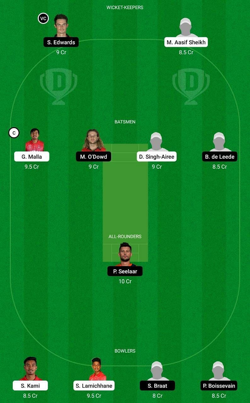 Fantasy Suggestion #1: Scott Edwards, M Aasif Sheikh, Max O'Dowd, Bas de Leede, Gyanendra Malla, Dipendra Singh Airee, Pieter Seelar, Sandeep Lamichhane, Seb Braat, Sompal Kami and Philippe Boissevain