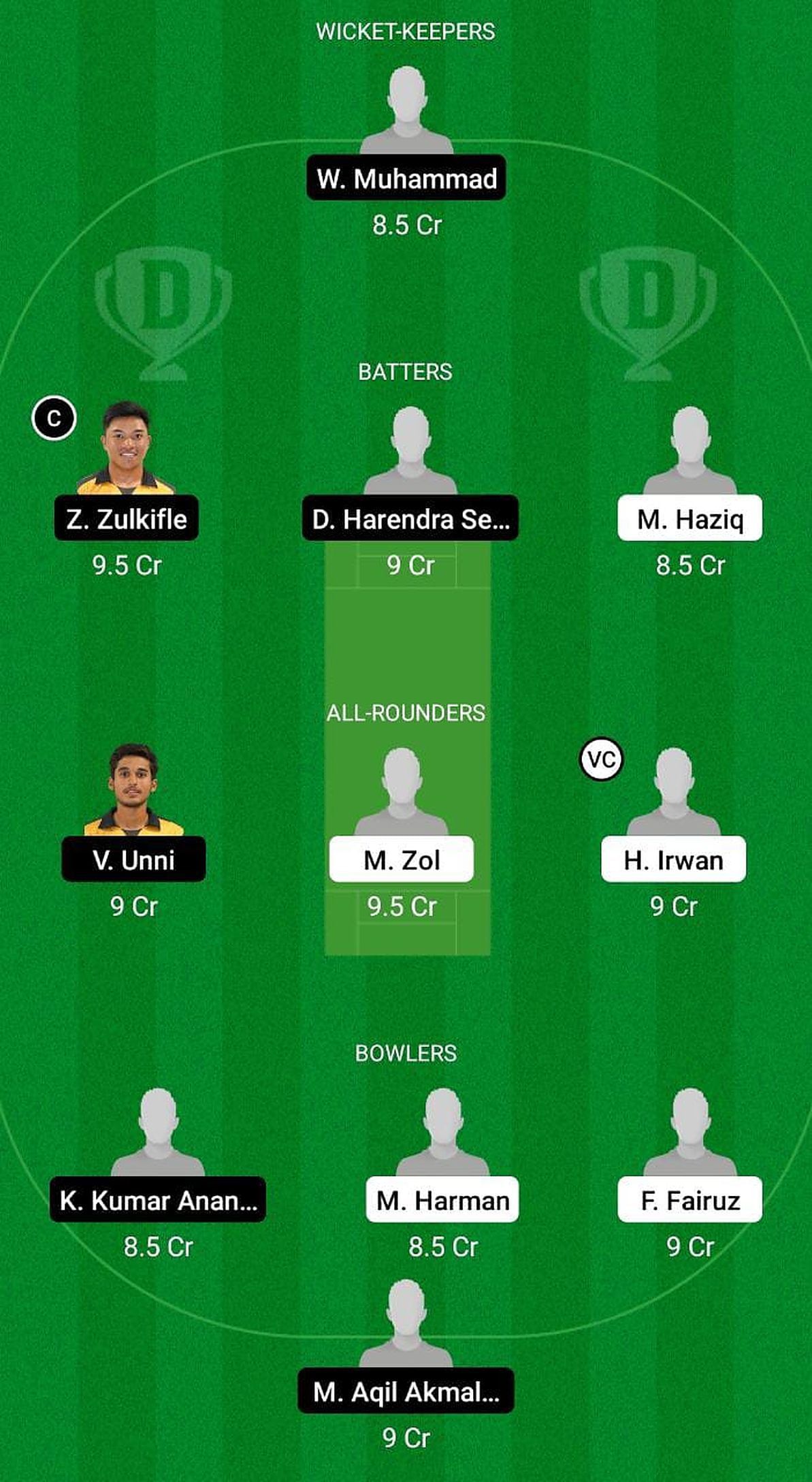 He is a safe and worthy choice for the wicket-keeper's position. However, in his previous outing against Pulau Pinang, Wan failed miserably, scoring only six runs. He'll be eager to perform in this game.