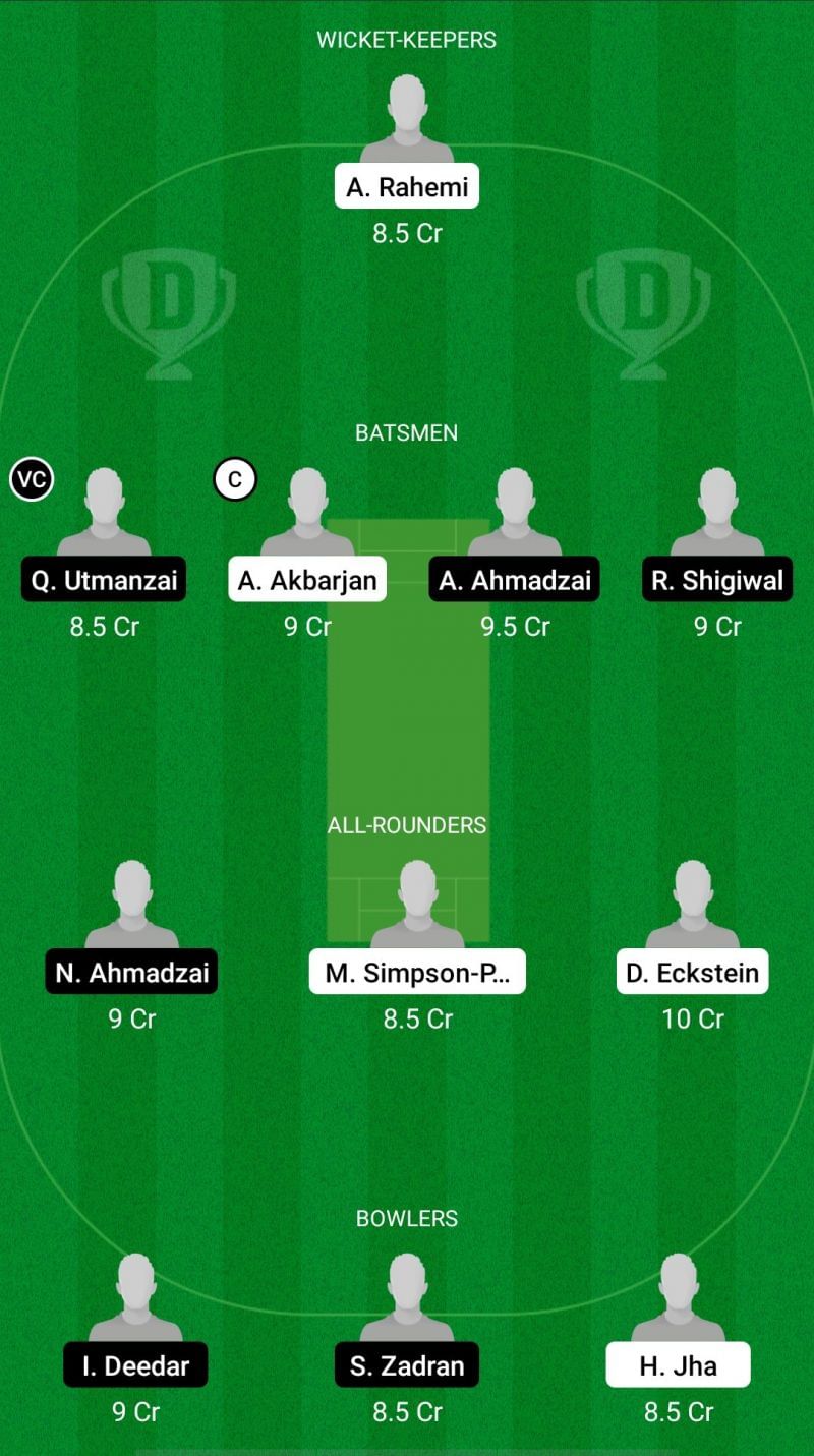 Fantasy Suggestion #1: Ali Rahemi, Qadargul Utmanzai, Abdullah Akbarjan, Aman Ahmadzai, Razmal Shigiwal, Noor Ahmadzai, Mark Simpson Parker, Daniel Eckstein, Itibarshah Deedar, Sahil Zadran, Himanshu Jha.