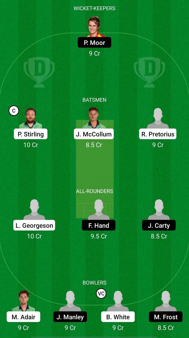 Fantasy Suggestion #1: Peter Moor, Ruhan Pretorius, James McCollum, Paul Stirling, Luke Georgeson, Jack Carty, Fionn Hand, Mark Adair, Benjamin White, Michael Frost, Josh Manley.