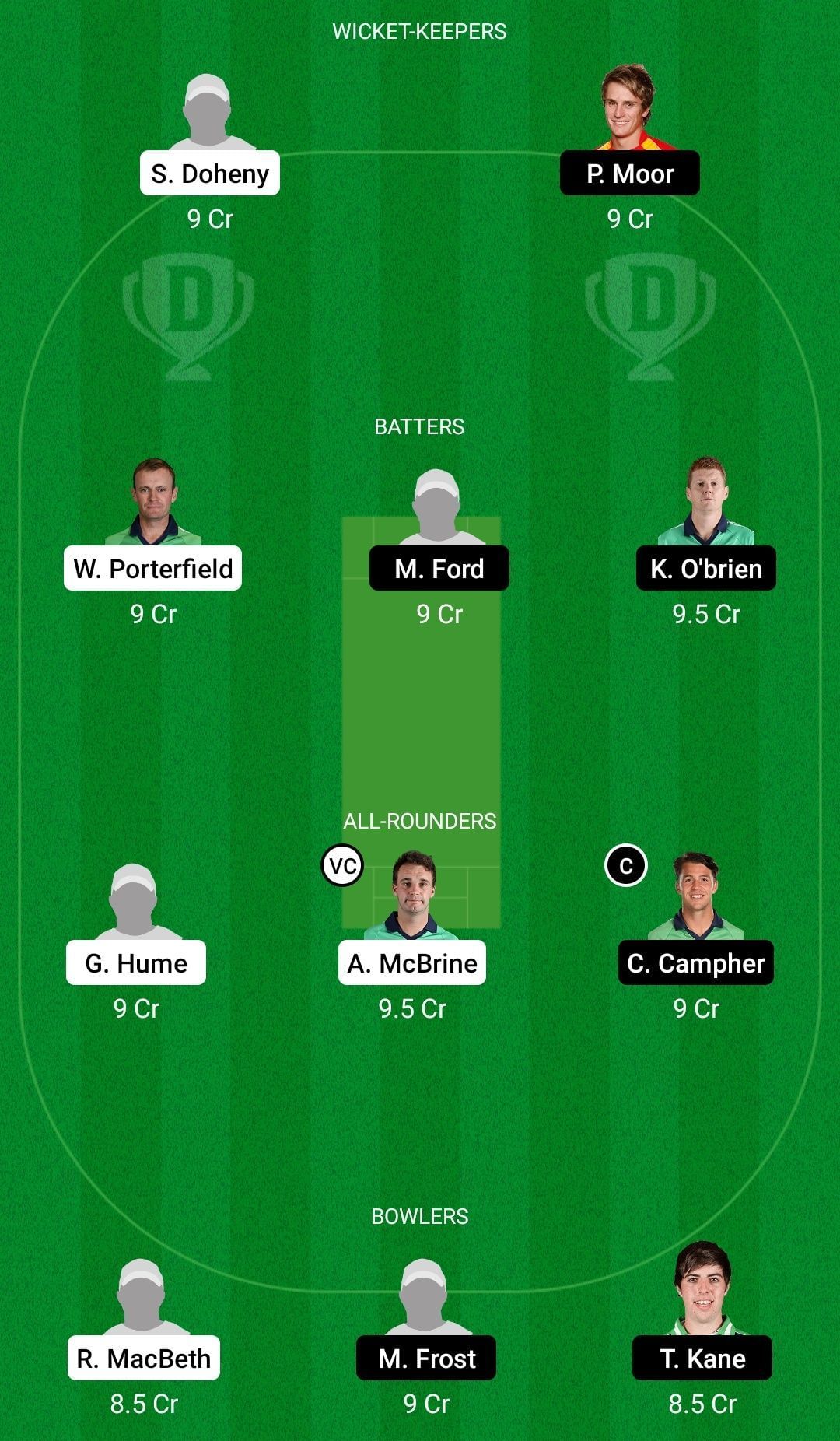 Fantasy Suggestion #1: Stephen Doheny, Peter Moor, William Porterfield, Matt Ford, Kevin O'Brien, Graham Hume, Andy McBrine, Curtis Campher, Ryan MacBeth, Michael Frost, Tryone Kane.