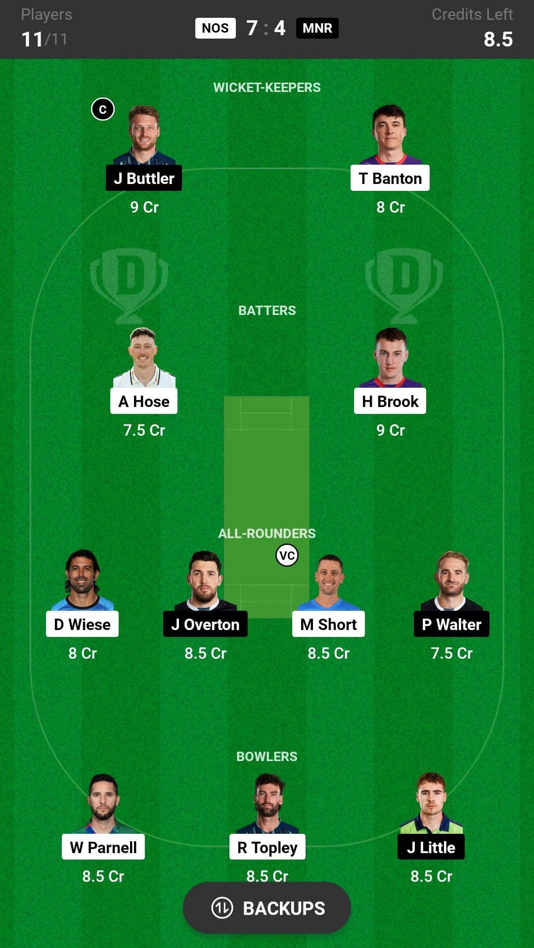 Ahead of this exciting match, here's all you need to know about the NOS vs MNR Dream11 Prediction, today's playing 11s, fantasy cricket tips, and the pitch report.