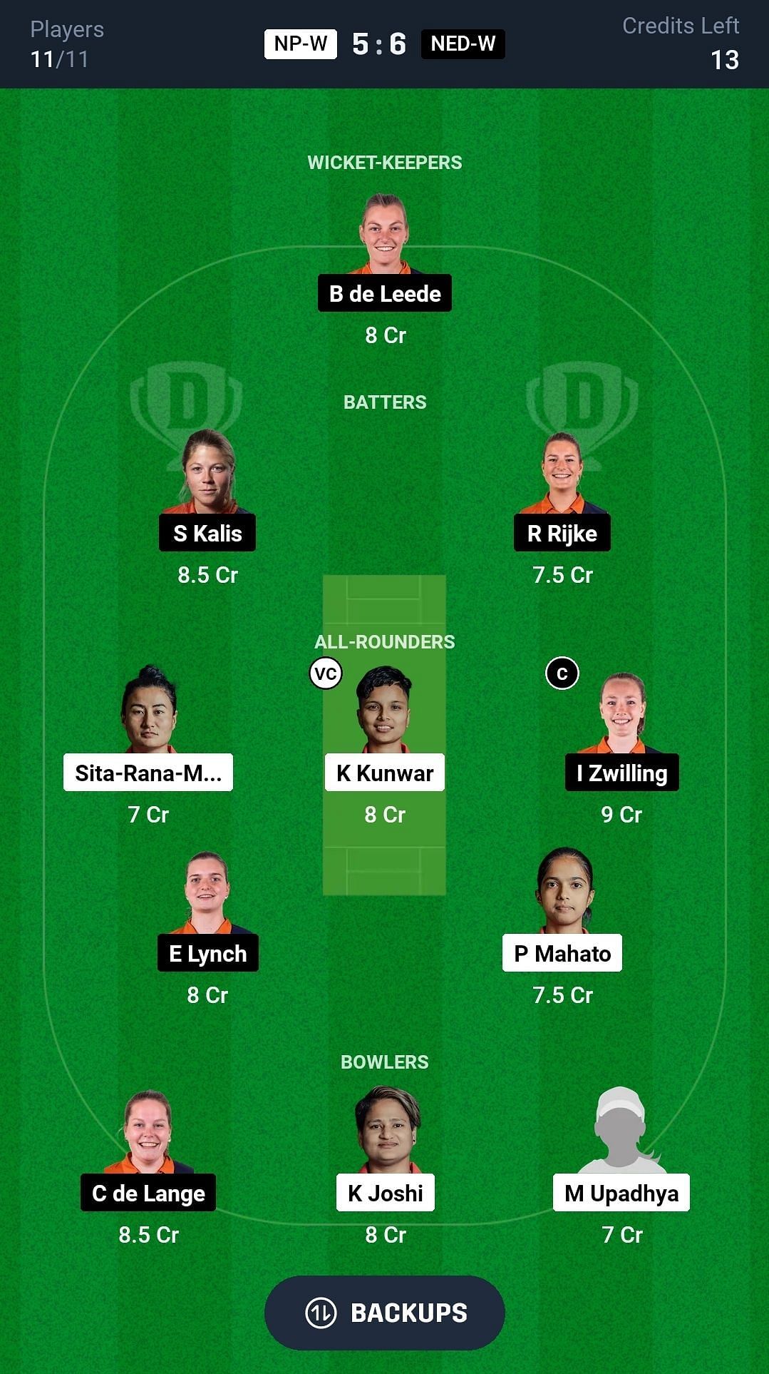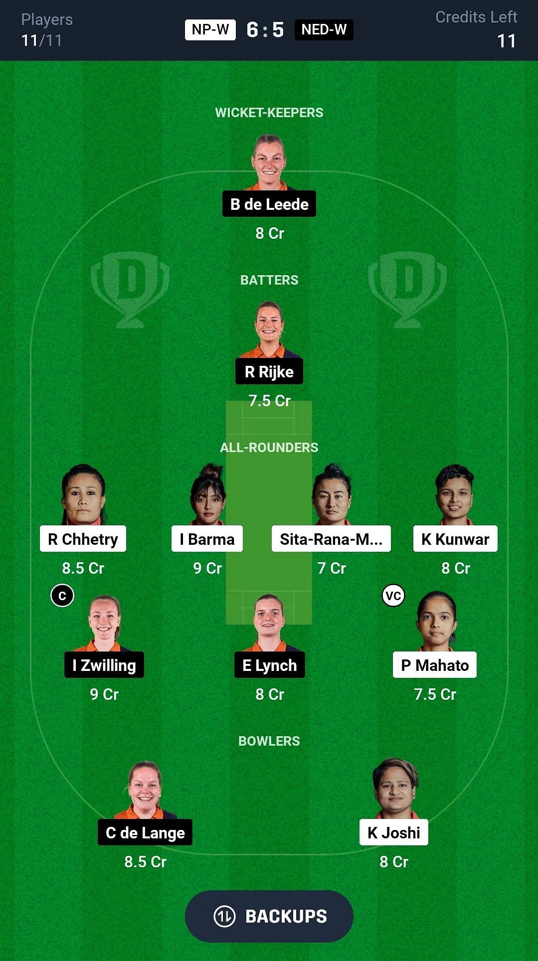Nepal Women vs Netherlands Women Dream11 Prediction Today, Grand League
