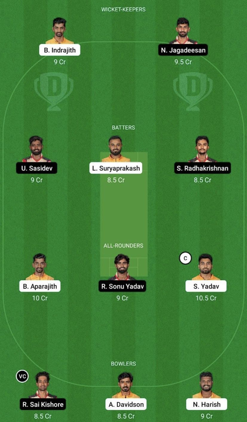 Fantasy Suggestion #2: Baba Indrajith, N Jagadeesan, L Suryaprakash, U Sasidev, S Radhakrishnan, Baba Aparajith, Sanjay Yadav, R Sai Kishore, R Sonu Yadav, Athisayaraj Davidson and NS Harish