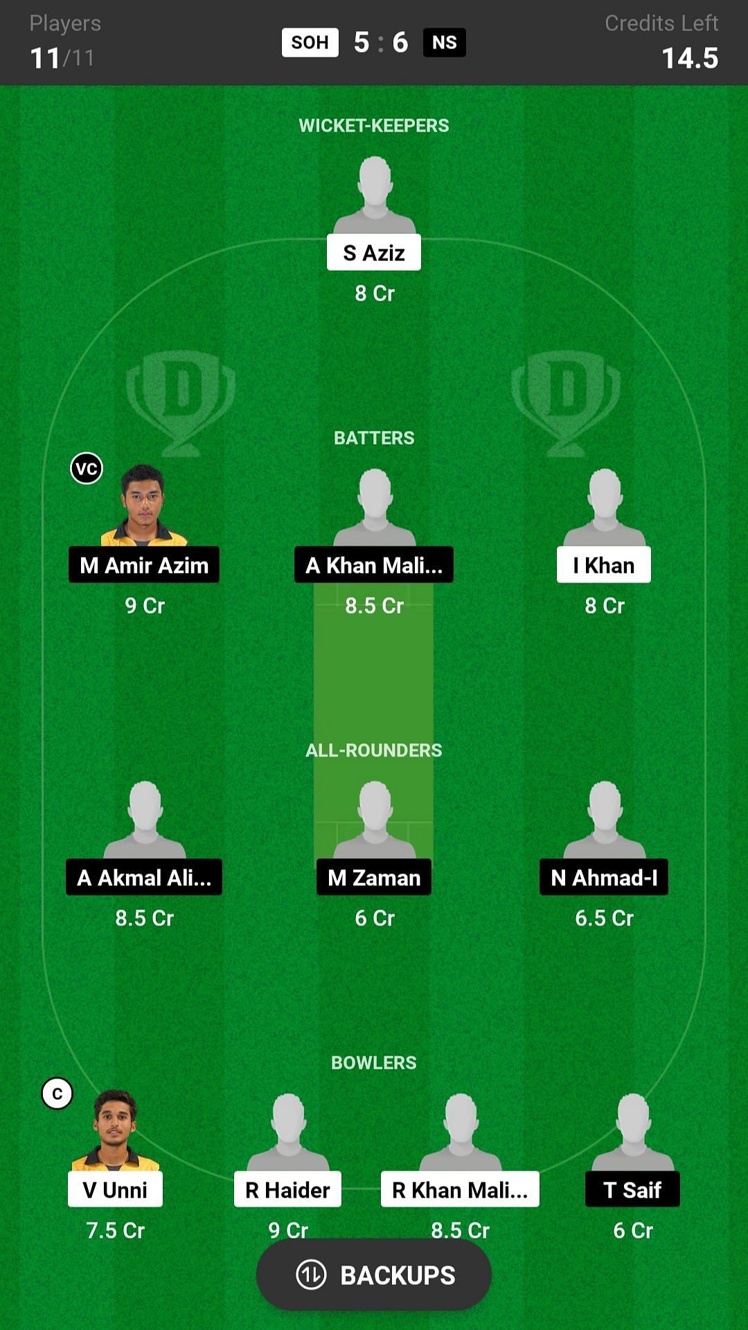 Since the pitch is well-balanced, you can make A Khan Malik as he will bat in the top order and is in top-notch form. You can make him the captain of the grand league teams. He has earned 171 points in the last two matches.