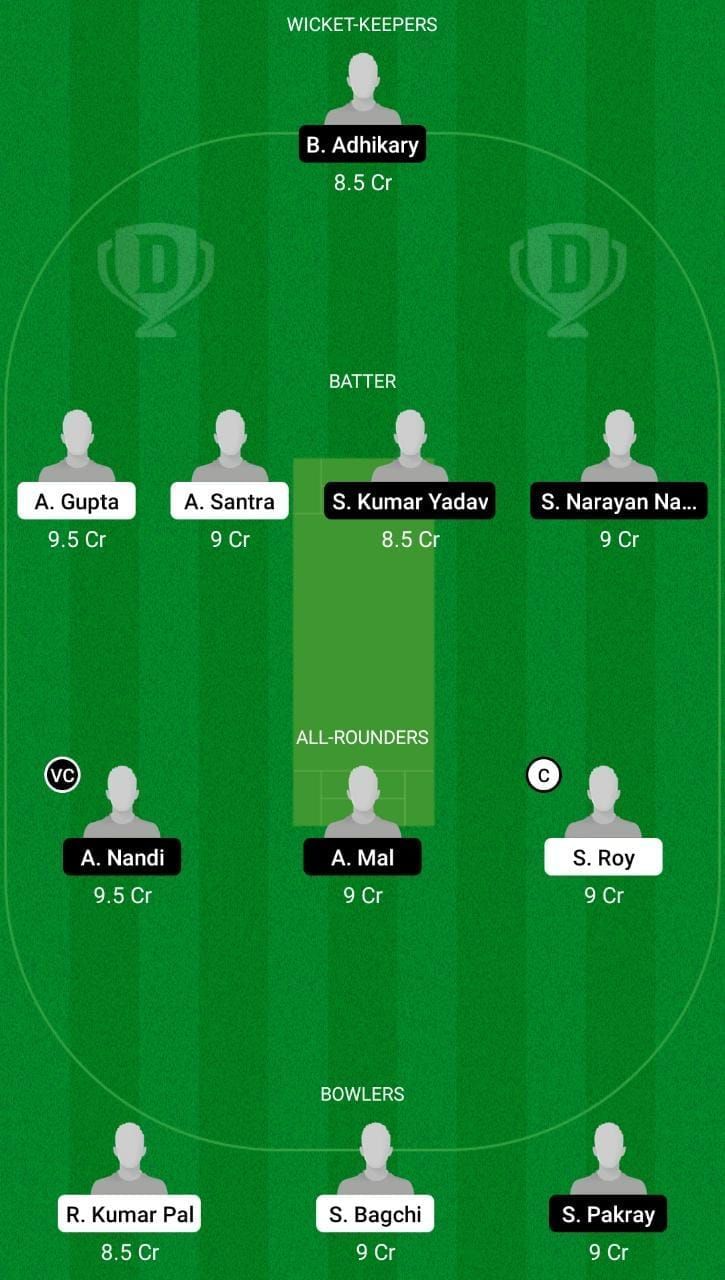 Fantasy Suggestion #2: B Adhikary, A Gupta, S Narayan Naubagh, S Kumar Yadav, A Santra, A Mal, S Roy, A Nandi, R Kumar Pal, S Bagchi, S Pakray