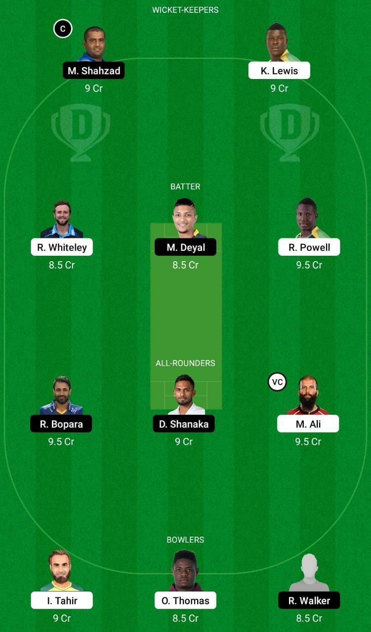 Fantasy Suggestion #1: Mohd Shahzad, Kennar Lewis, Ross Whiteley, Mark Deyal, Rovman Powell, Ravi Bopara, Dasun Shanaka, Moeen Ali, Imran Tahir, Oshane Thomas and Roman Walker