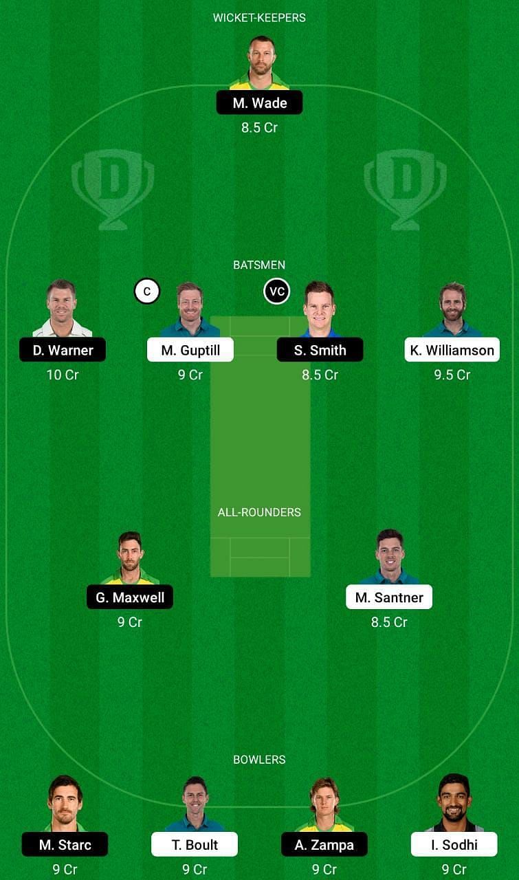 Fantasy Suggestion #1: Matthew Wade, David Warner, Steve Smith, Martin Guptill, Kane Williamson, Glenn Maxwell, Mitchell Santner, Mitchell Starc, Trent Boult, Adam Zampa and Ish Sodhi