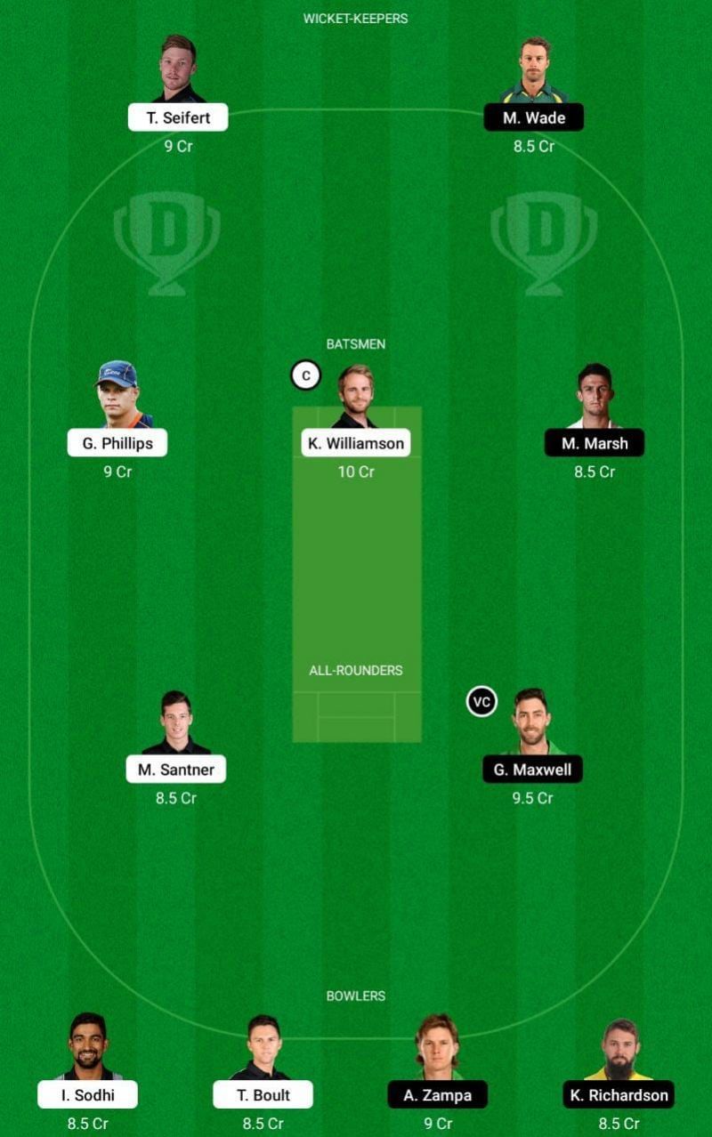 Fantasy Suggestion #1: Matt Wade, Tim Seifert, Kane Williamson, Mitchell Marsh, Glenn Phillips, Glenn Maxwell, Mitchell Santner, Ish Sodhi, Kane Richardson, Trent Boult and Adam Zampa