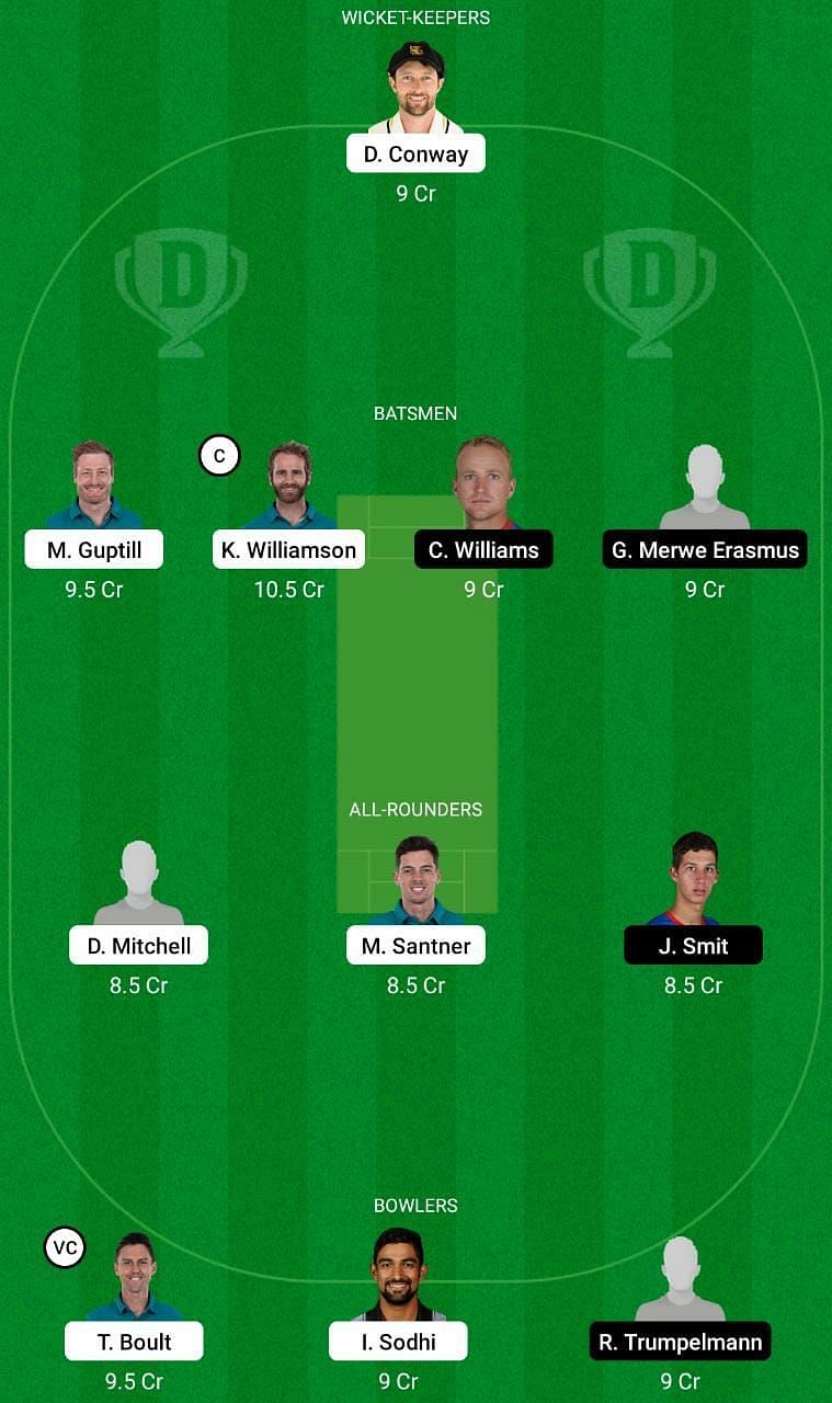 Fantasy Suggestion #2: Devon Conway, Martin Guptill, Kane Williamson, Craig Williams, Gerhard Erasmus, David Wiese, Mitchell Santner, JJ Smit, Adam Milne, Ish Sodhi and Jan Frylinck