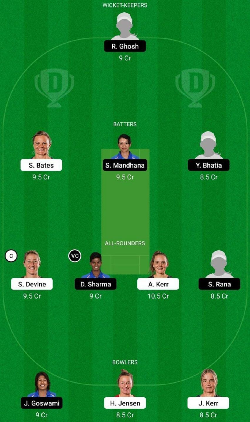 Fantasy Suggestion #2: Richa Ghosh, Suzie Bates, Smriti Mandhana, Yastika Bhatia, Sophie Devine, Deepti Sharma, Amelia Kerr, Sneh Rana, Hayley Jensen, Jess Kerr and Jhulan Goswami