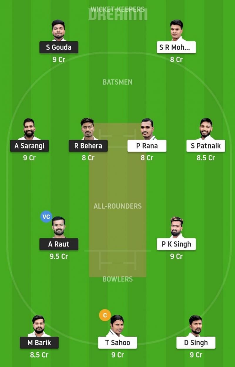 Fantasy Suggestion #1: Sourav Gouda, Soubhagya R Mohanty, Ramachandra Behera, Sandeep Patnaik, Prasantha Rana, Anurag Sarangi, Abhishek Raut, Prayash K Singh, Tukuna Sahoo, Manoj Barik