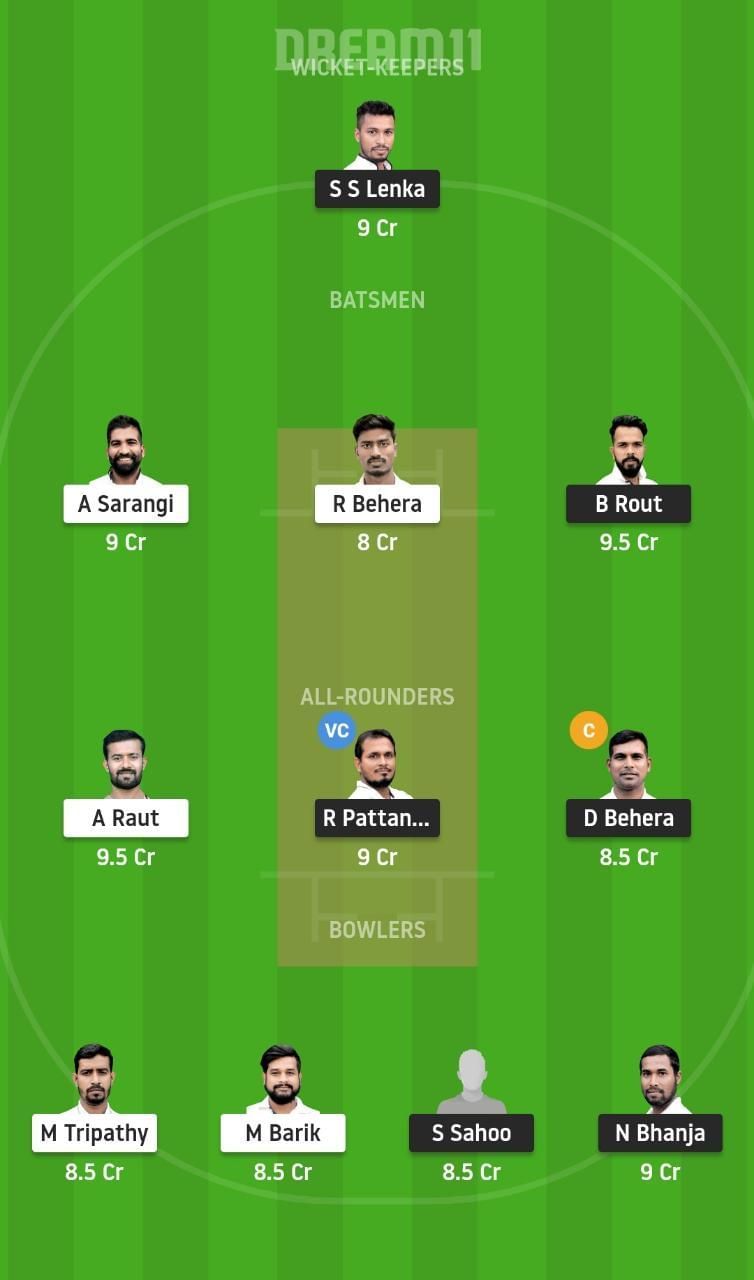 Fantasy Suggestion #1: Sujith Lenka, Ramachandra Behera, Anurag Sarangi, Bikash Rout, Rakesh Pattanaik, Deepak Behera, Abhishek Raut, Nauttam Bhanja, Manoj Barik, Sibhasish Sahoo, Mrunmay Tripathy