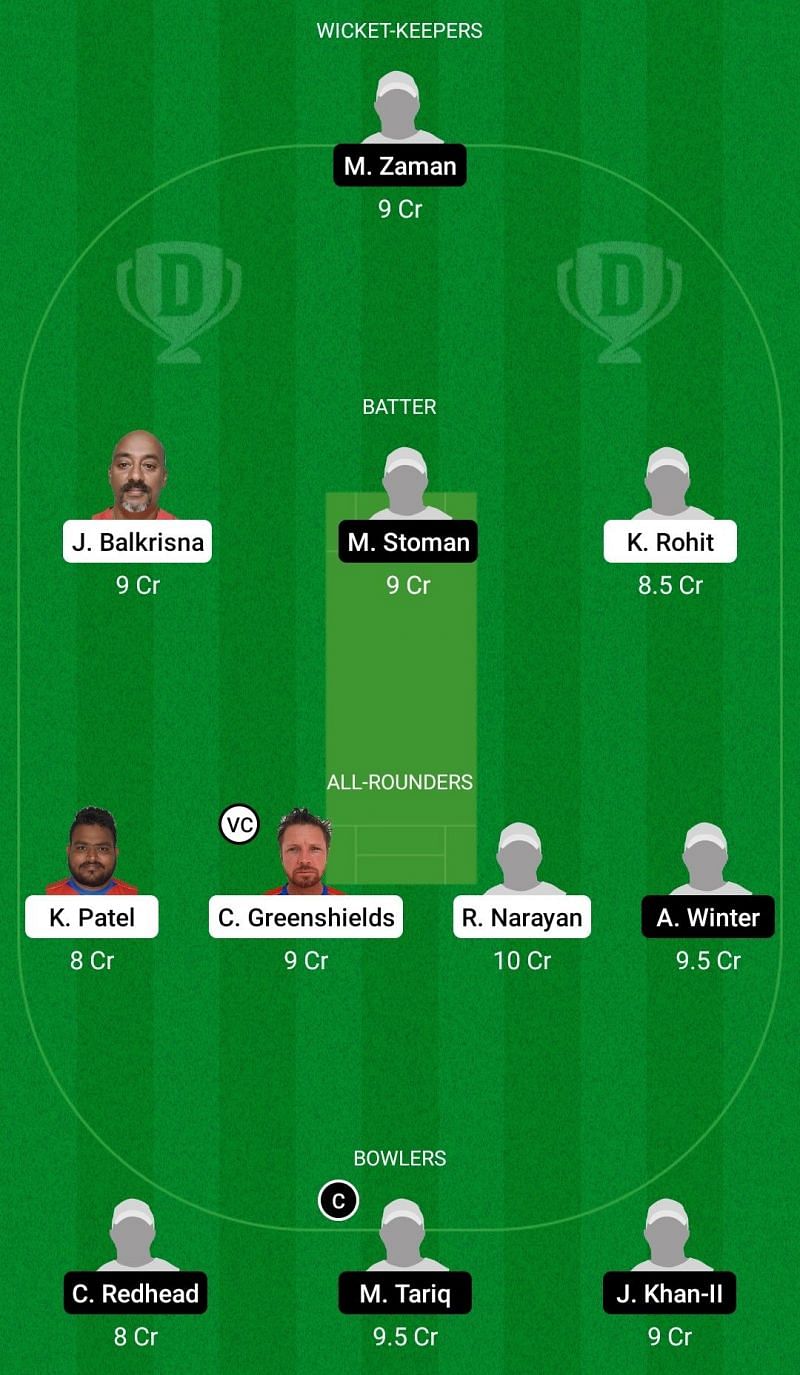 Fantasy Suggestion #2: MD Zaman, Jiteshkumar Balkrisna, Miguel Stoman, Kumar Rohit, Krut Patel, Conrad Greenshields, Ranjit Narayan, Andrew Winter, Chris Redhead, Mubeen Tariq, Junaid Khan