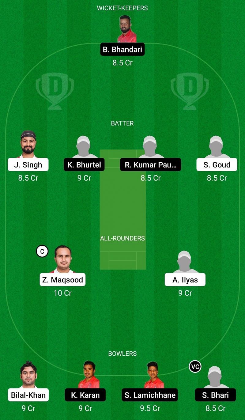 Captain: Aqib Ilyas. Vice-captain: Sandeep Lamichhane