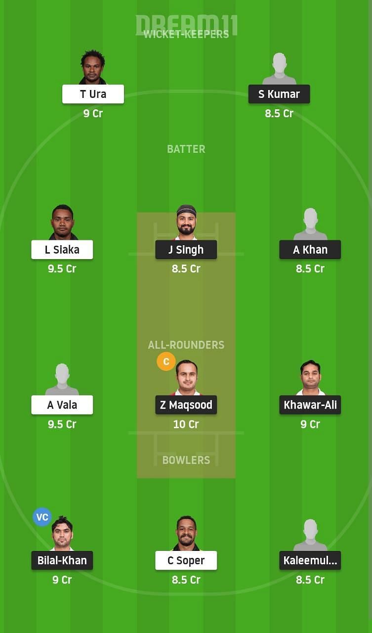 Fantasy Suggestion #1: S Kumar, T Ura, J Singh, A Khan, L Siaka, Z Maqsood, K Ali, A Vala, B Khan, Kaleemullah, C Soper