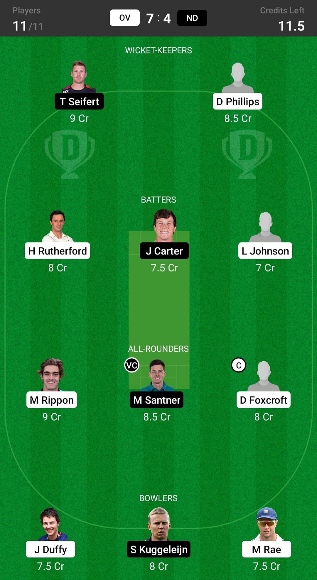 M Santner and D Foxcroft are the best all-rounder picks for the Dream11 team as they are batting in the top order and also completing their quota of overs. M Rippon is another good pick for today's Dream11 team.