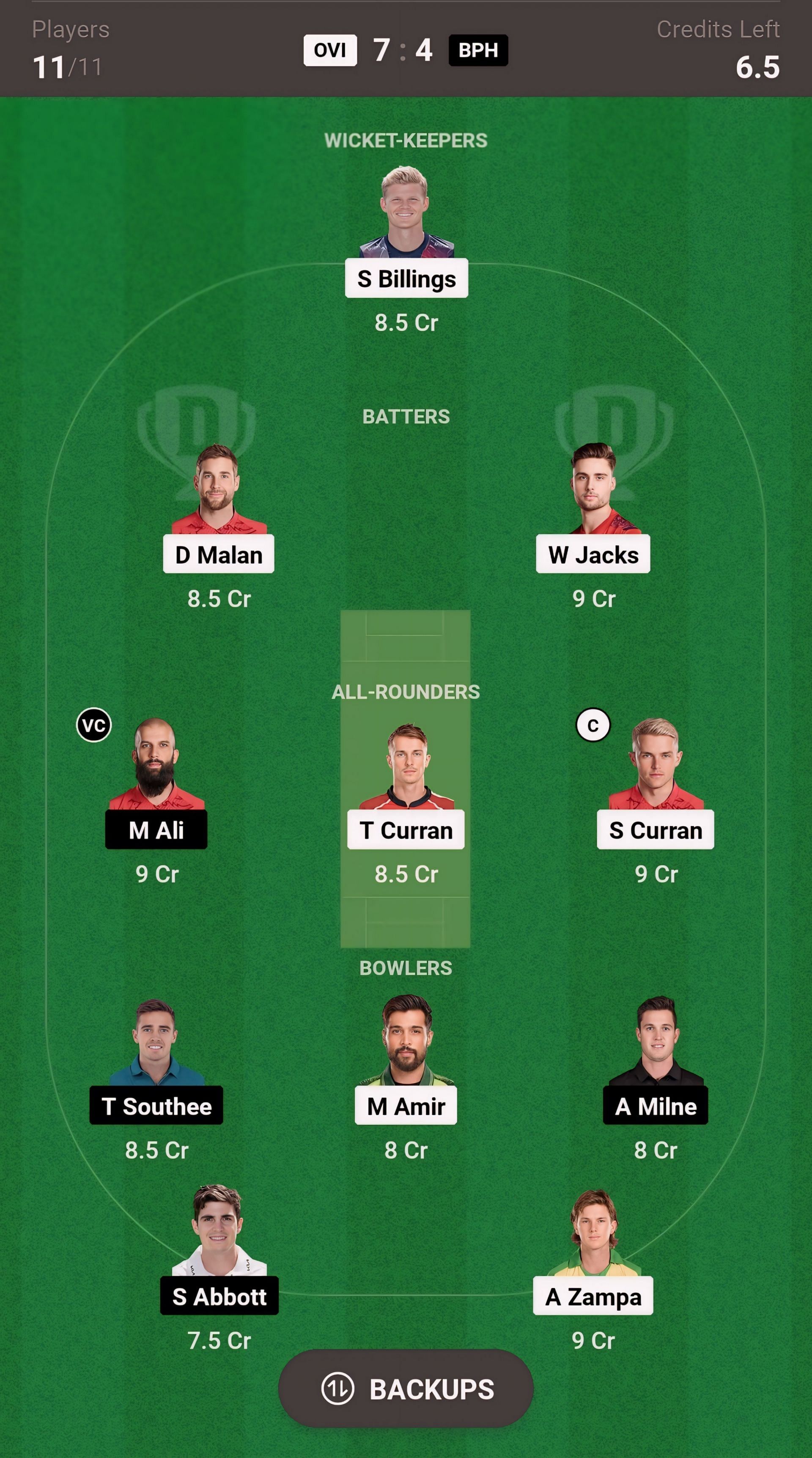 Bowlers: A Zampa, M Amir, T Southee, S Abbott, A Milne