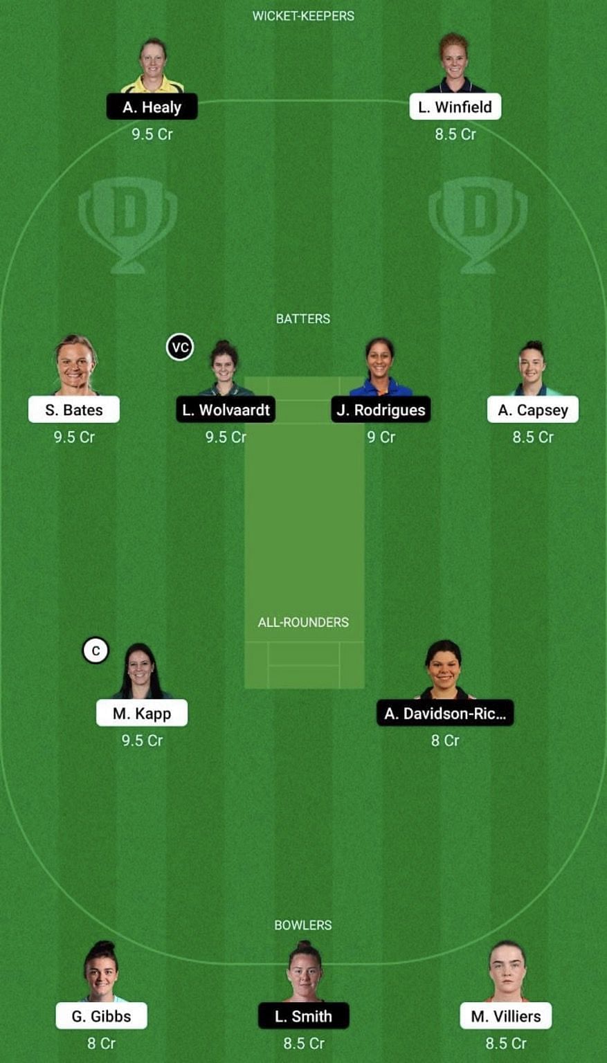 Fantasy Suggestion #1: Alyssa Healy, Lauren Winfield, Laura Wolvaardt, Jemimah Rodrigues, Alice Capsey, Dane van Niekerk, Marizanne Kapp, Hollie Armitage, Lucy Higham, Linsey Smith and Mady Villiers.