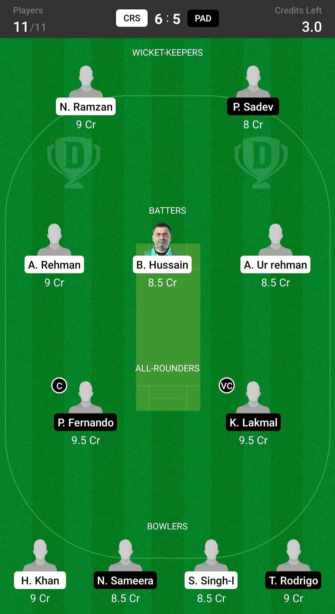 Captain: P Fernando Vice Captain: A Ur Rehman