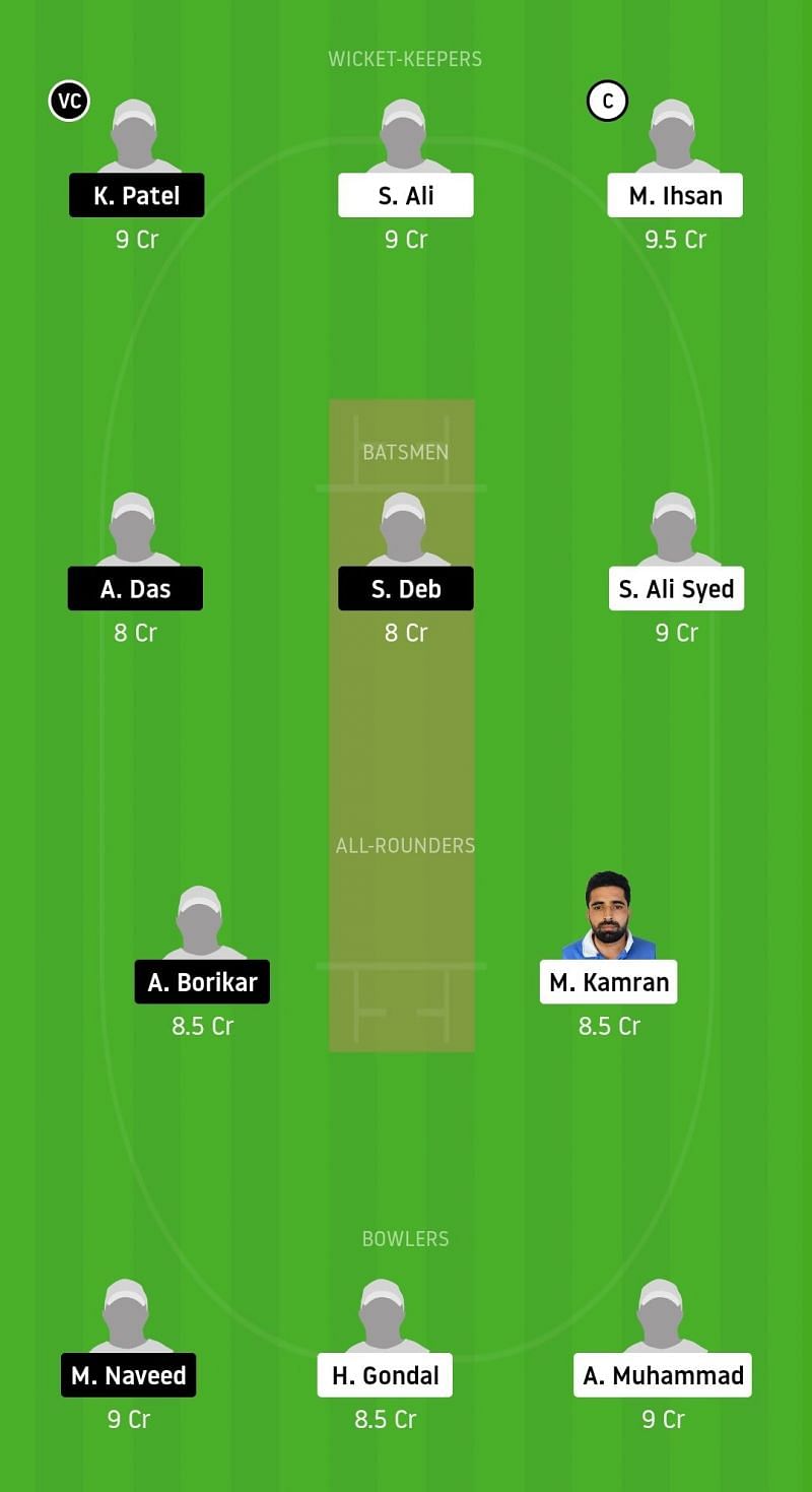 Fantasy Suggestion #1: Kishitij Patel, Sikandar Ali, Muhammad Ihsan, Syed Shafaat Ali, Amit Das, Shubhdeep Deb, Syed Shafaat Ali, Abhishek Borikar, Muhammad Kamran, Muhammad Naveed, Hassan Gondal, Atif Muhammad.