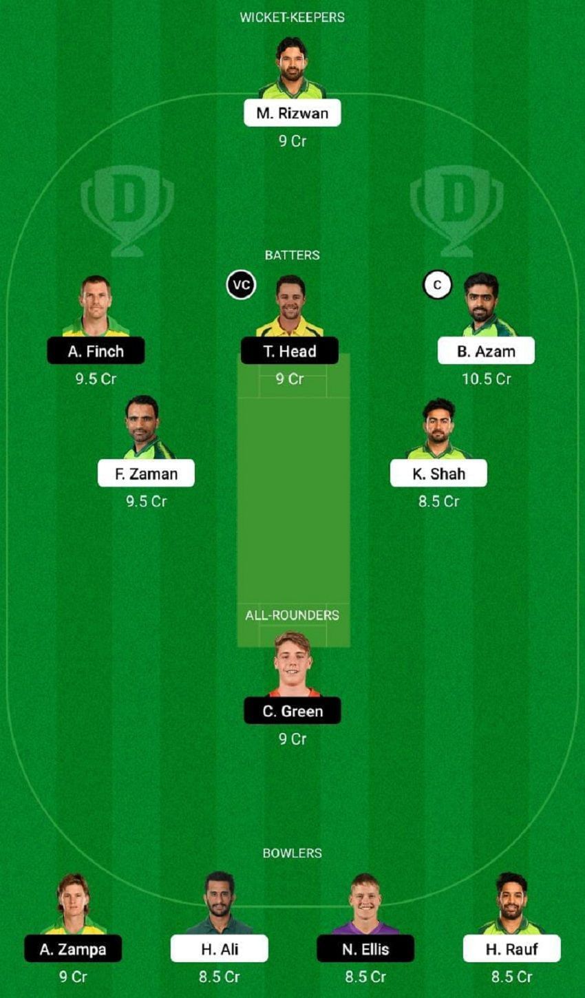 Fantasy Suggestion #1: Mohammad Rizwan, Babar Azam, Aaron Finch, Travis Head, Fakhar Zaman, Khushdil Shah, Cameron Green, Nathan Ellis, Adam Zampa, Hasan Ali and Haris Rauf.