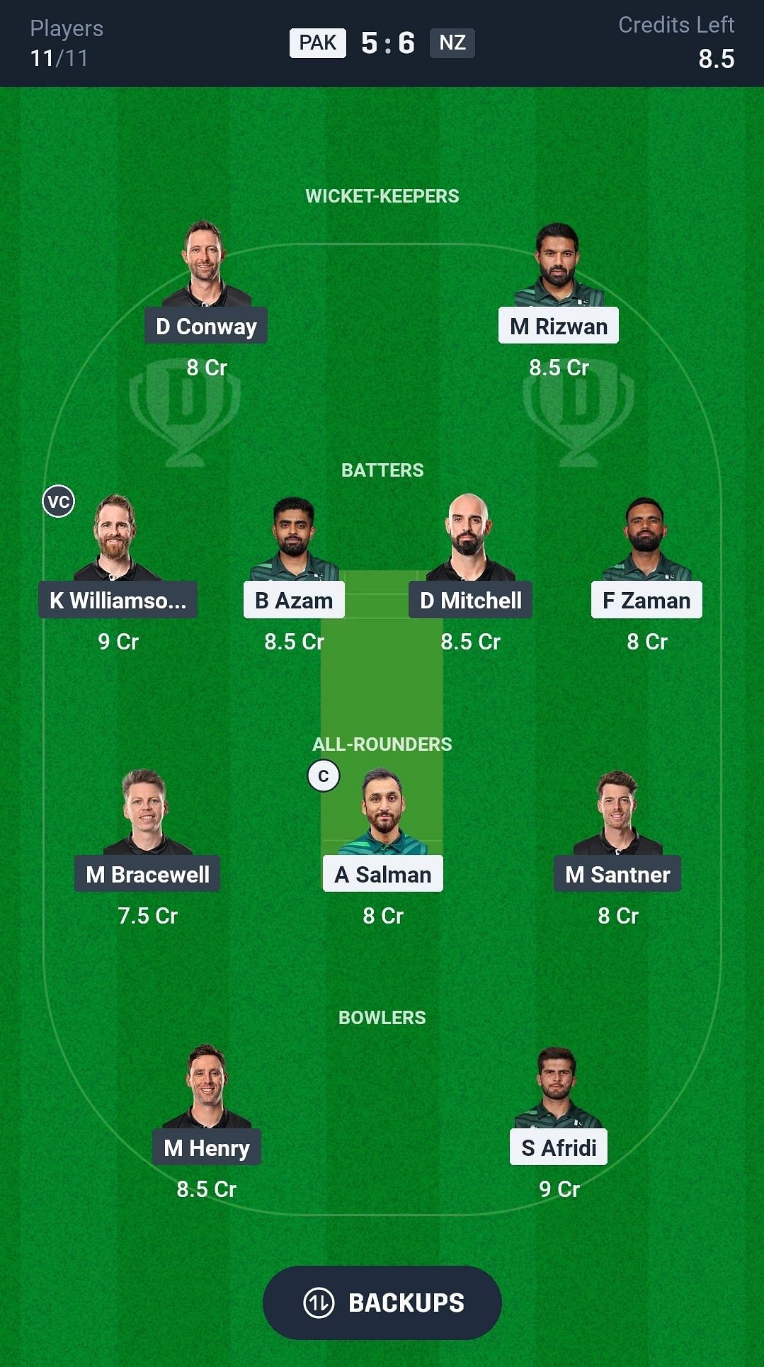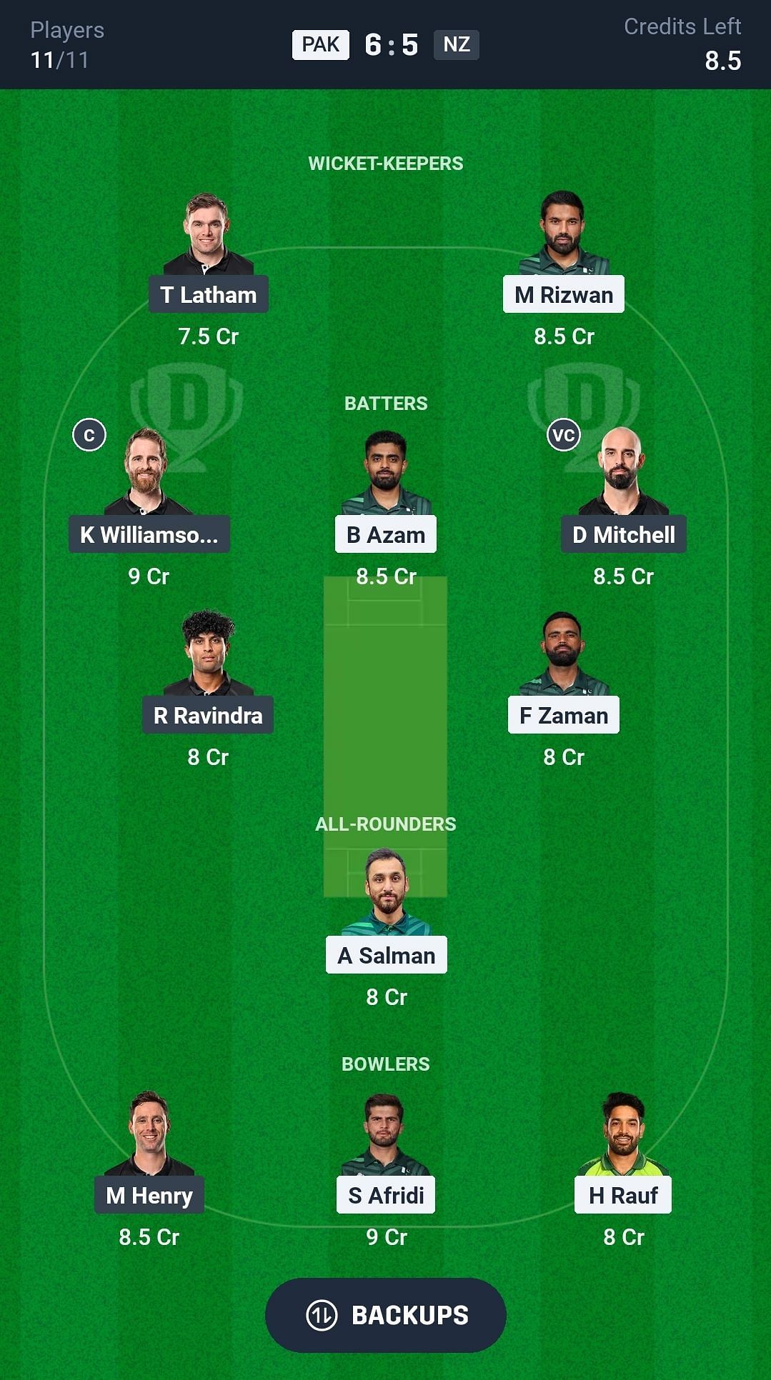 Batters: F Zaman, K Williamson, D Mitchell, B Azam, R Ravindra