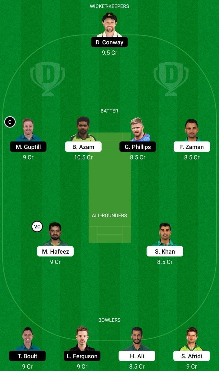 Fantasy Suggestion #1: Devon Conway, Babar Azam, Fakhar Zaman, Kane Williamson, Martin Guptill, Mohammad Hafeez, Mitchell Santner, Shaheen Afridi, Hasan Ali, Lockie Ferguson and Tim Southee