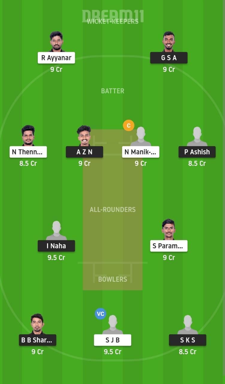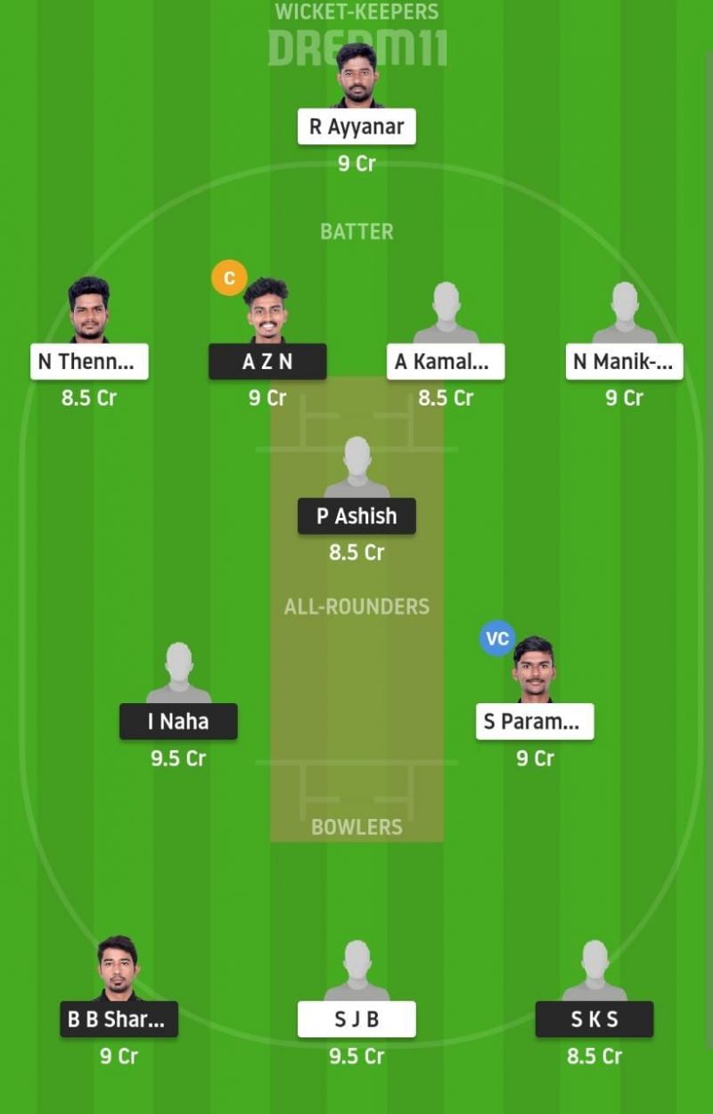 Fantasy Suggestion #1: R Ayyanar, Ameer N, N Manik Salekar, A Kamaleeshwaran, P Ashish, N Thennavan, S Parameeswaran, I Naha, Satish B, BB Sharma, Santhosh S