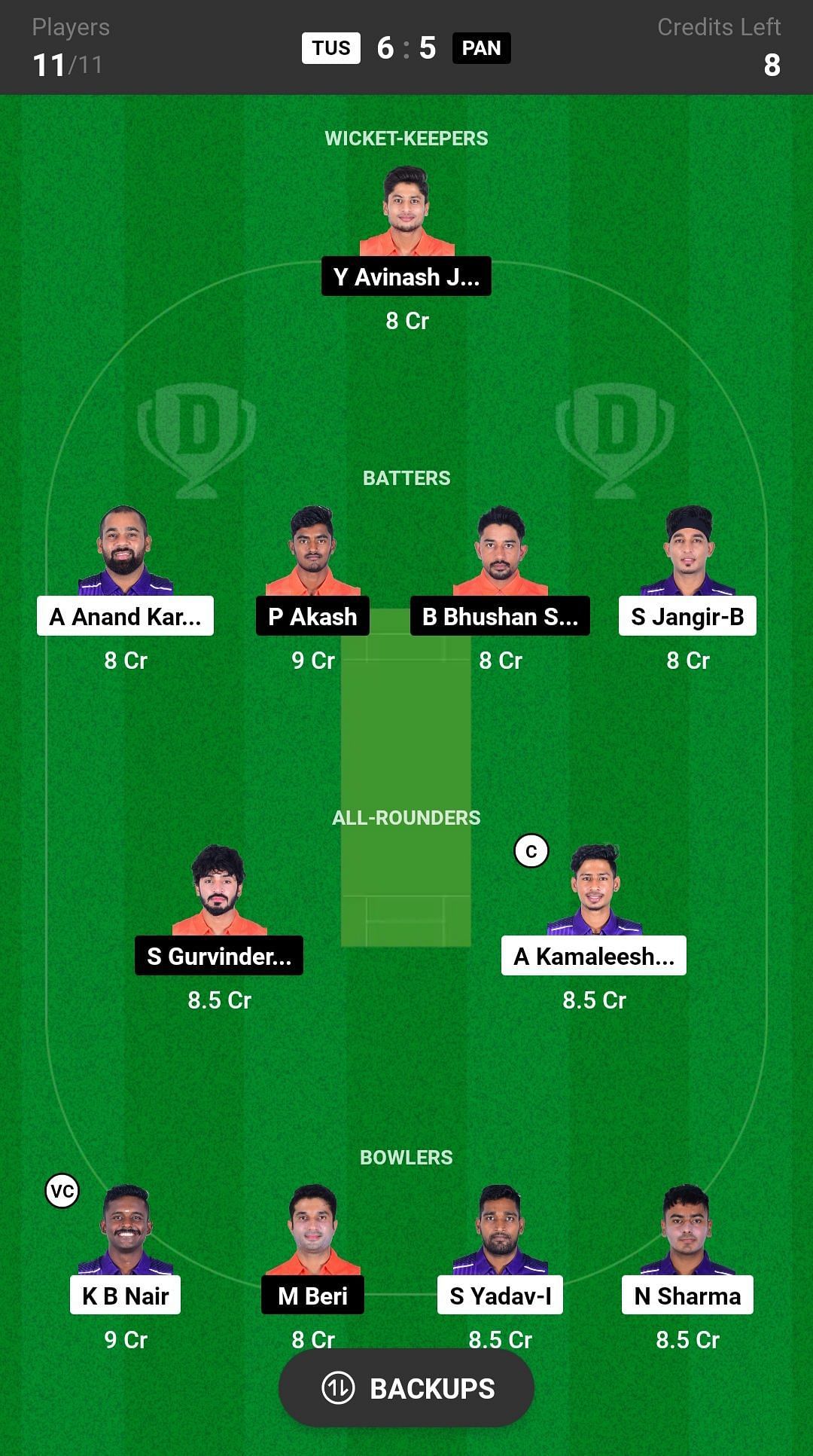 B Bhushan and P Akash are the two best batsmen picks for the Dream11 team. A Anand played exceptionally well in the last series, so he is also a good pick for today's Dream11 fantasy team.