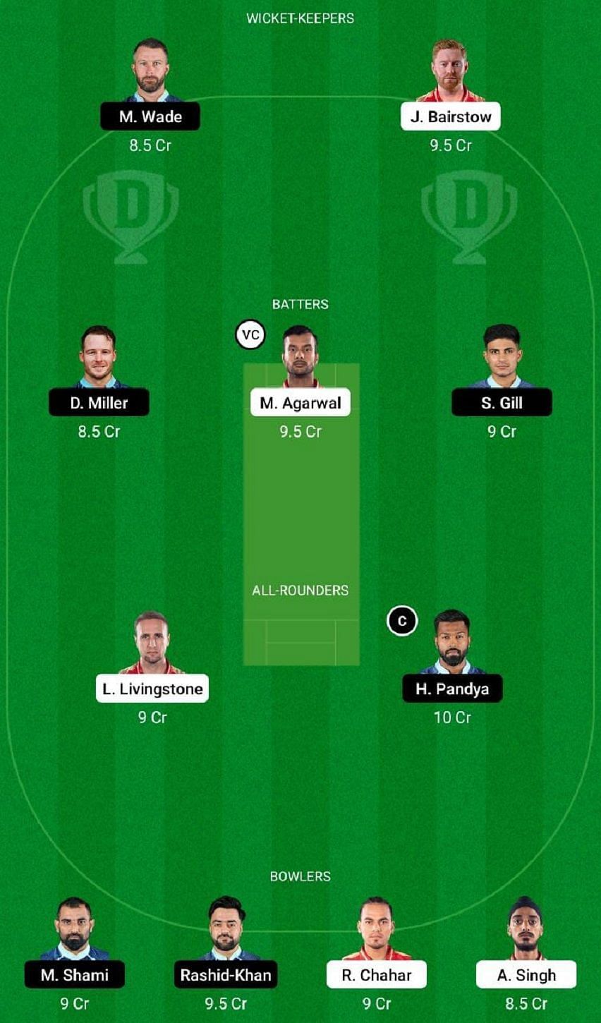 Fantasy Suggestion #2: Matthew Wade, David Miller, Shubman Gill, Mayank Agarwal, Liam Livingstone, Hardik Pandya, Jonny Bairstow, Rahul Chahar, Rashid Khan, Mohammed Shami and Arshdeep Singh.