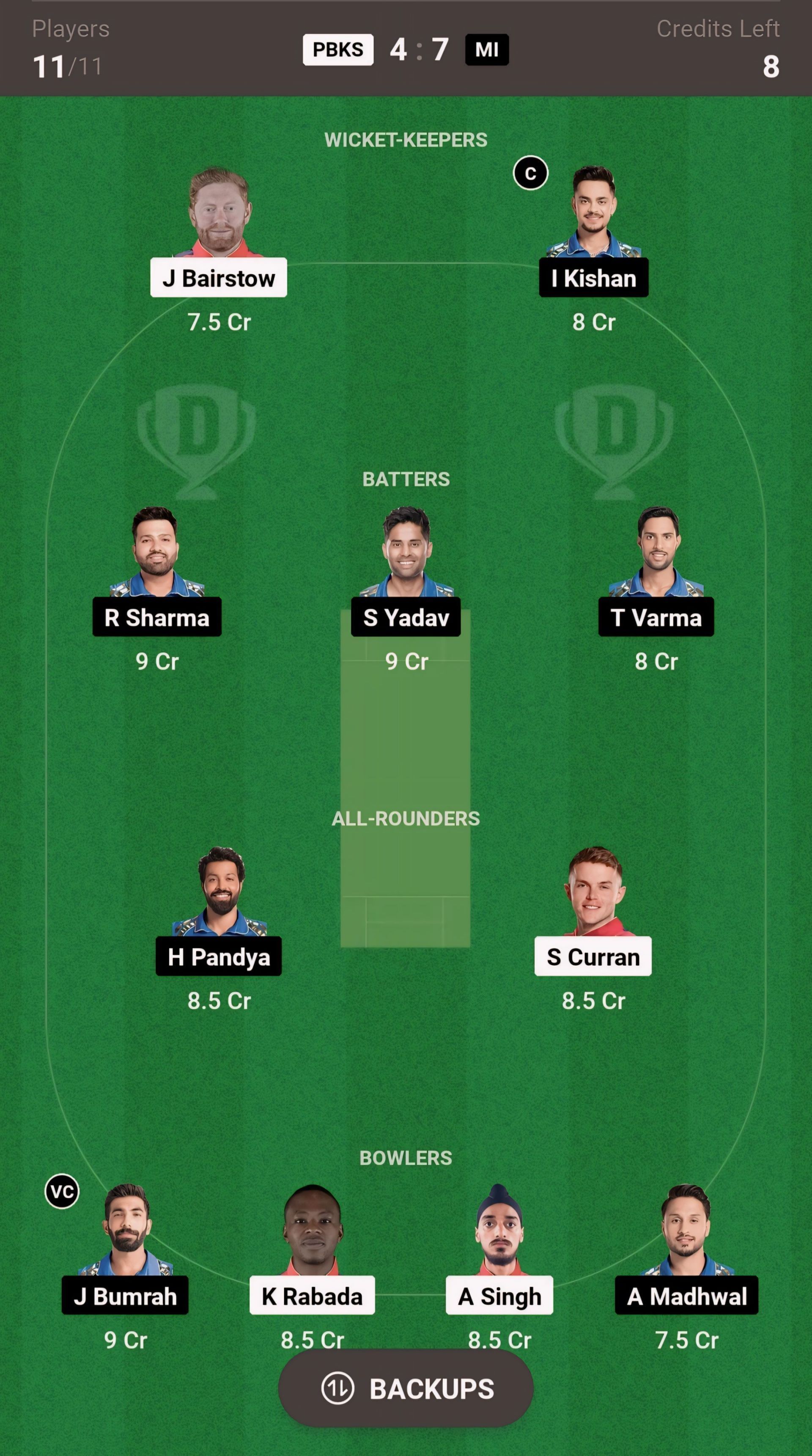 PBKS vs MI match captain and vice-captain choices