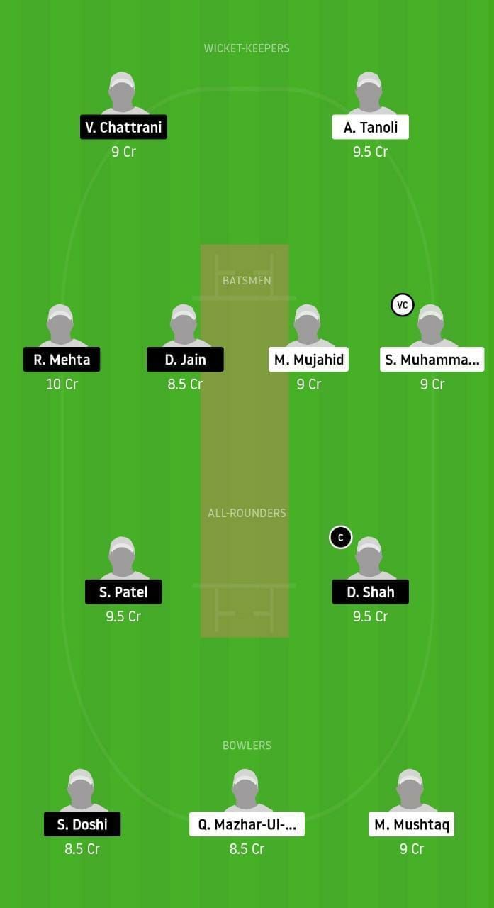 Fantasy Suggestion #2: A Tanoli; S Muhammandzai, R Mehta, D Jain, S Rawat; D Shah, S Patel; M Shuib-Farooque, Q Mazhar-ul-Haq, S Doshi, M Mushtaq.