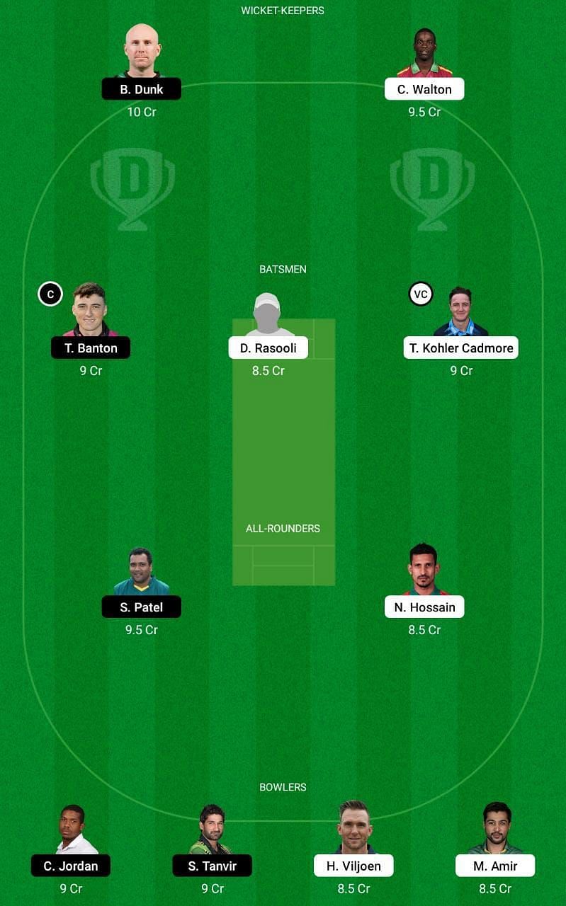 Fantasy Suggestion #1: Ben Dunk, Chadwick Walton, Tom Banton, Darwish Rasooli, Tom Kohler-Cadmore, Samit Patel, Nasir Hossain, Mohd Amir, Hardus Viljoen, Sohail Tanvir and Chris Jordan
