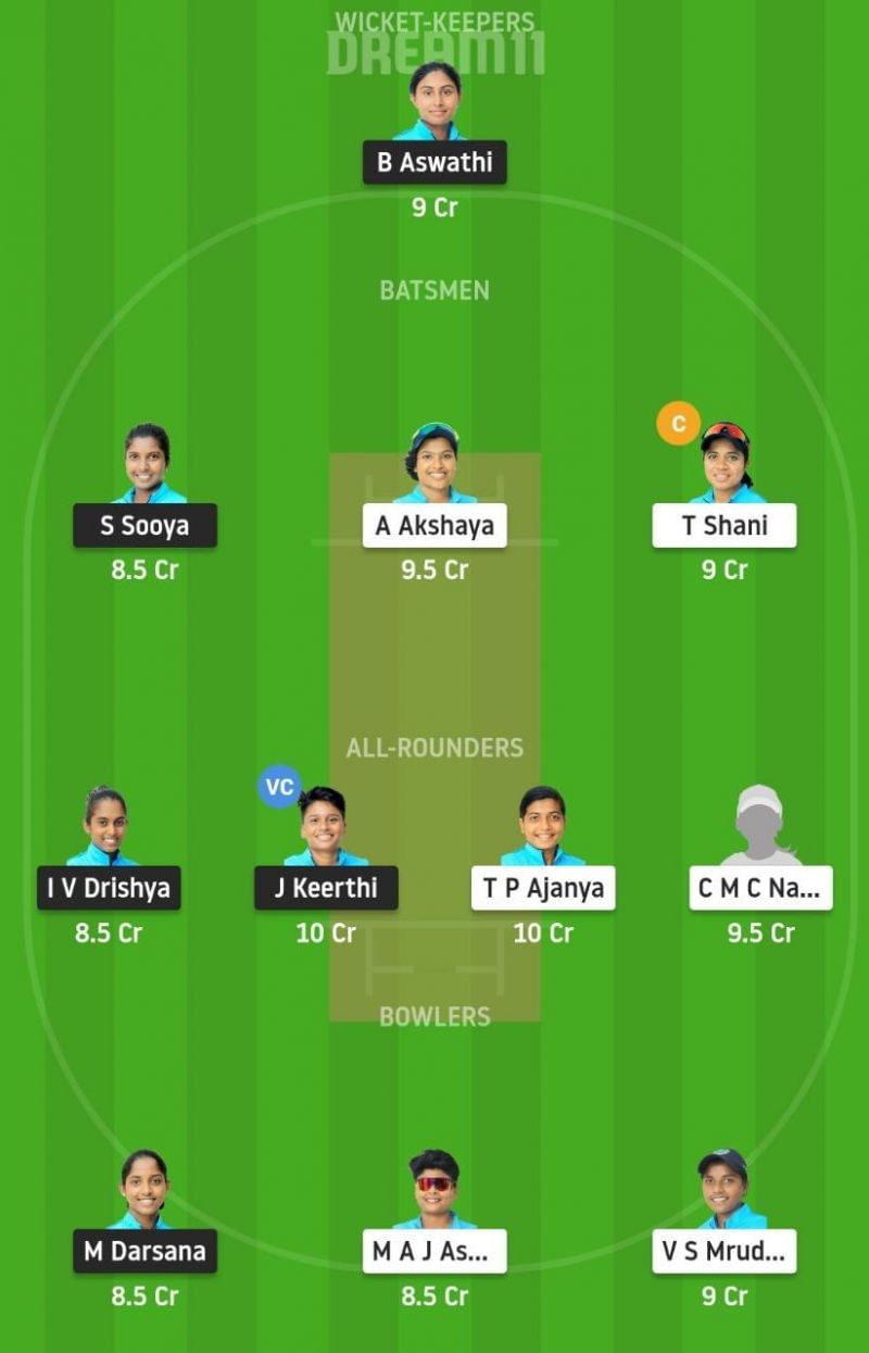 Fantasy Suggestion #2: B Aswathi, D Jayalekshmi, T Shani, A Akshaya, S Sooya, CMC Najla, J Keerthi, TP Ajanya, MAJ Aswathy, M Darsana, VS Mrudhula